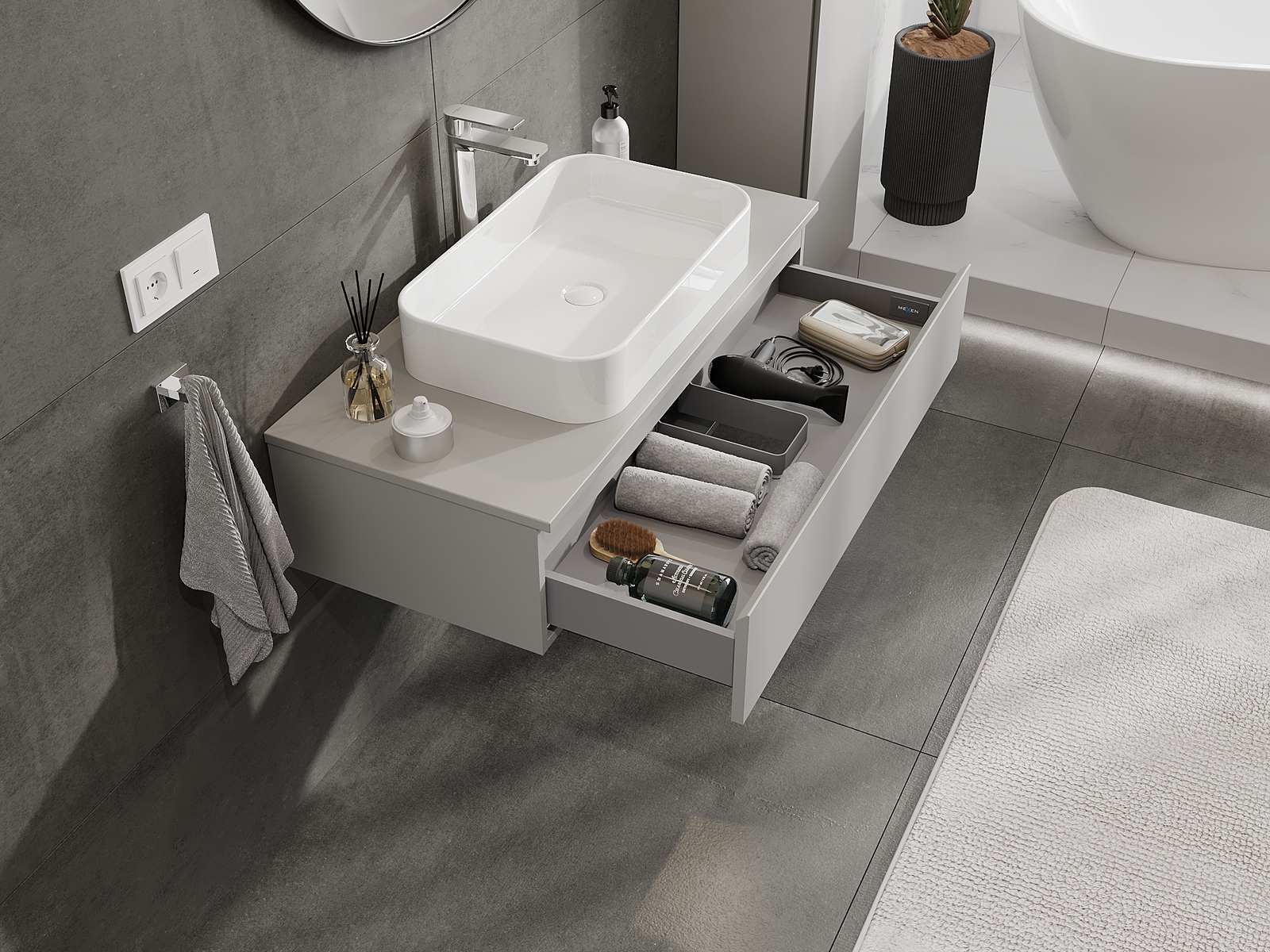 Mexen Orio vonios spintelė po kriaukle 100 cm, 1 stalčius, pilka matinė - 91A10-10023-1-BF62