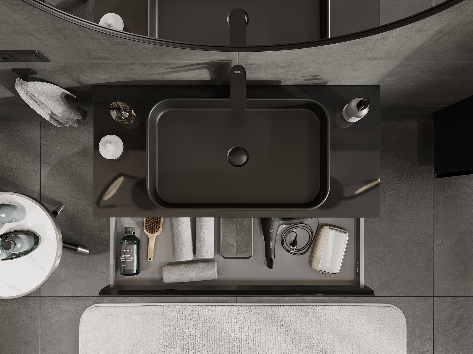 Mexen Orio vonios kambario spintelė po praustuvu 100 cm, 1 stalčius, juoda blizgi - 91A10-10023-1-BF70