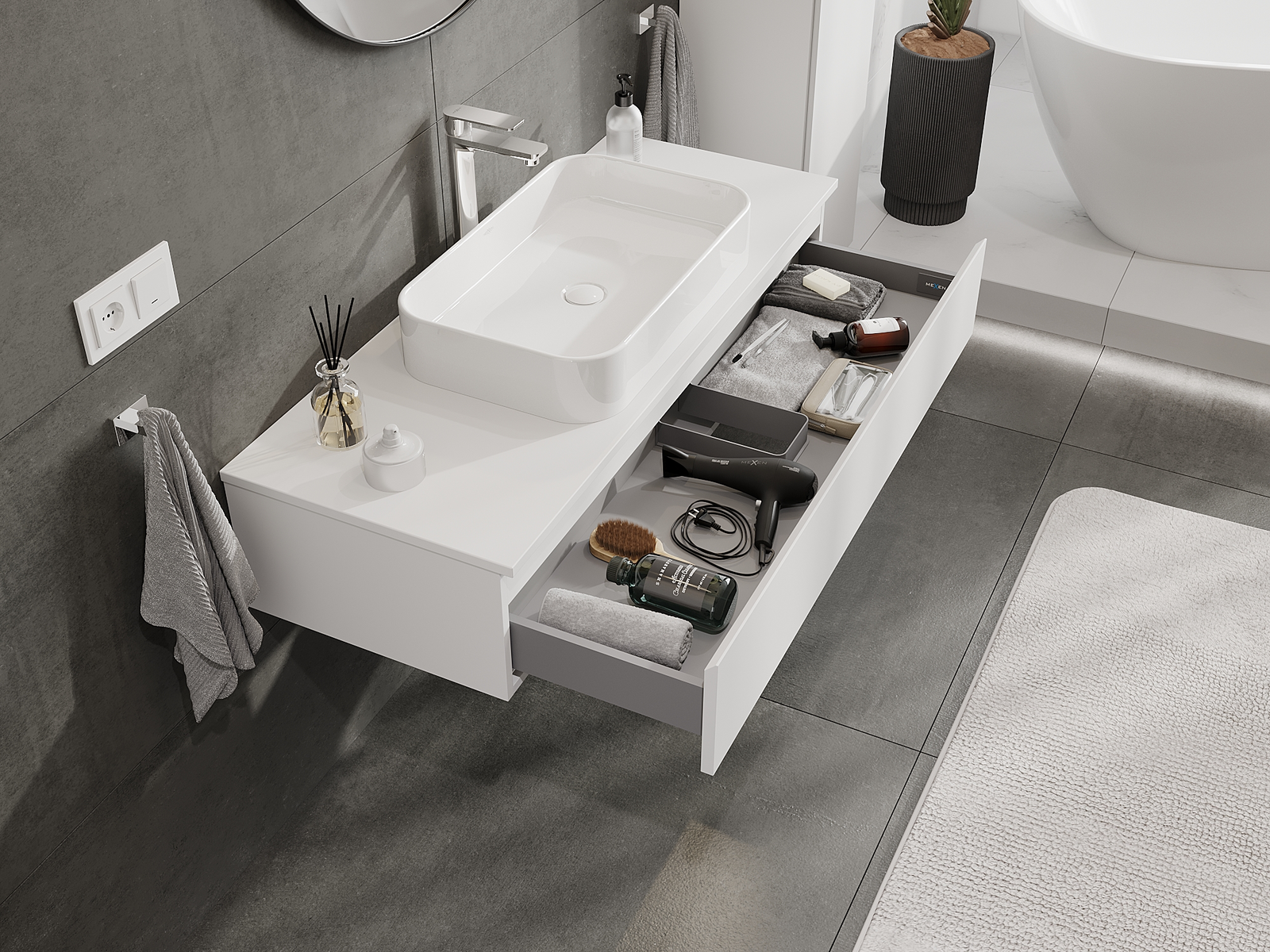 Dėl tvirtų medžiagų, preciziško atlikimo ir šiuolaikinių technologinių sprendimų, produktas užtikrina patogų naudojimą, atsparumą drėgmei ir temperatūros pokyčiams, taip pat elegantišką išvaizdą, kuri tinka įvairiems vonios kambario stiliams.