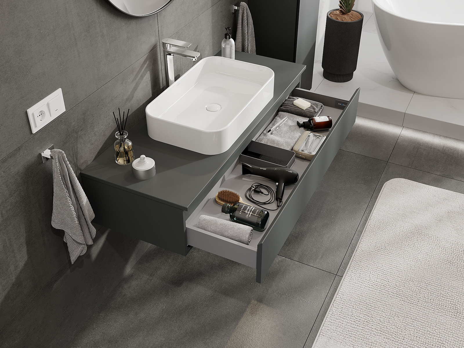 Mexen Orio vonios spintelė po praustuvu 120 cm, 1 stalčius, matinis grafitas - 91A10-12023-1-BF66