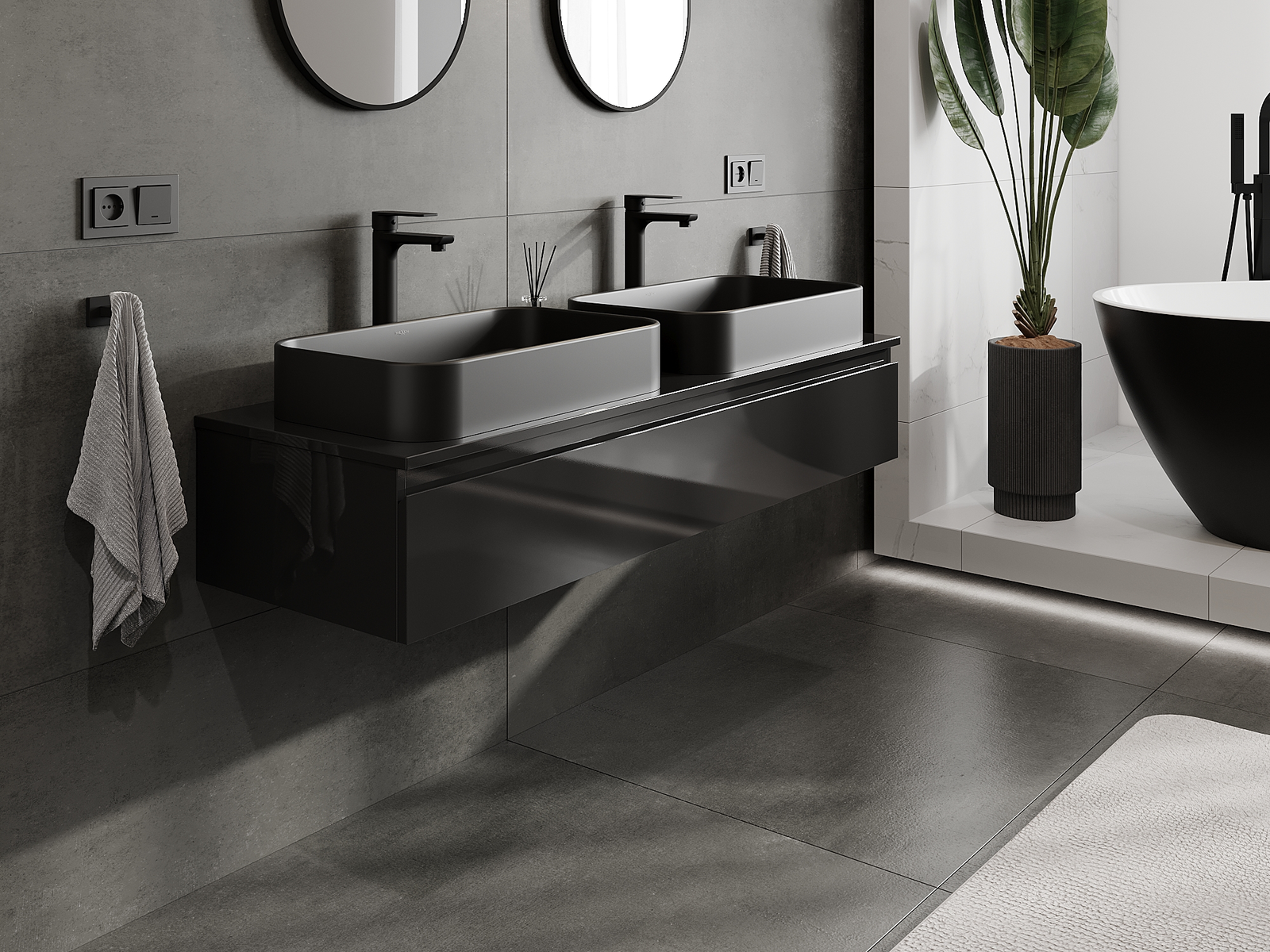 Mūsų moduliniai vonios baldai gali būti derinami tarpusavyje įvairiomis spalvų konfigūracijomis, leidžiant visiškai pritaikyti pagal asmeninius poreikius. Galima pasirinkti tiek atskirų elementų išvaizdą, tiek funkcijas, kas leidžia baldus pritaikyti pagal savo stiliaus ir naudojimo preferencijas.