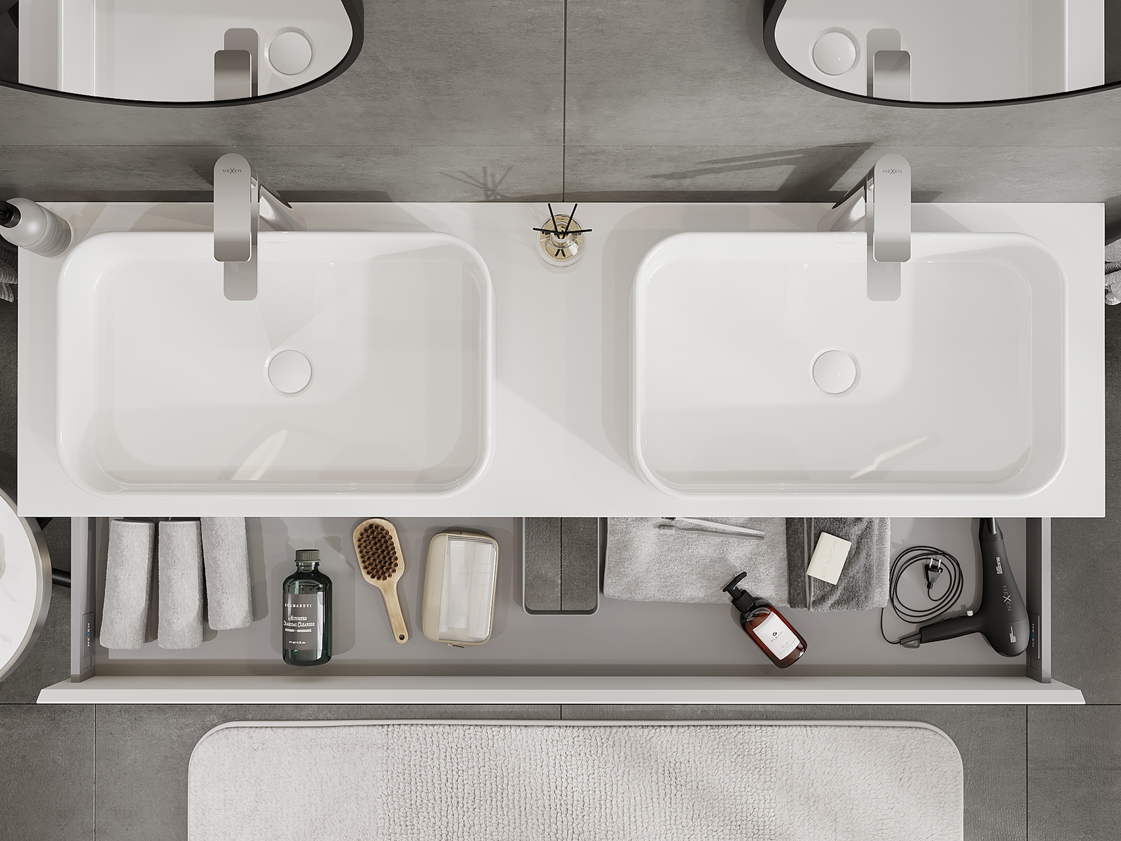 Mexen Orio vonios spintelė po kriaukle 160 cm, 1 stalčius, balta matinė - 91A10-16023-1-BF01