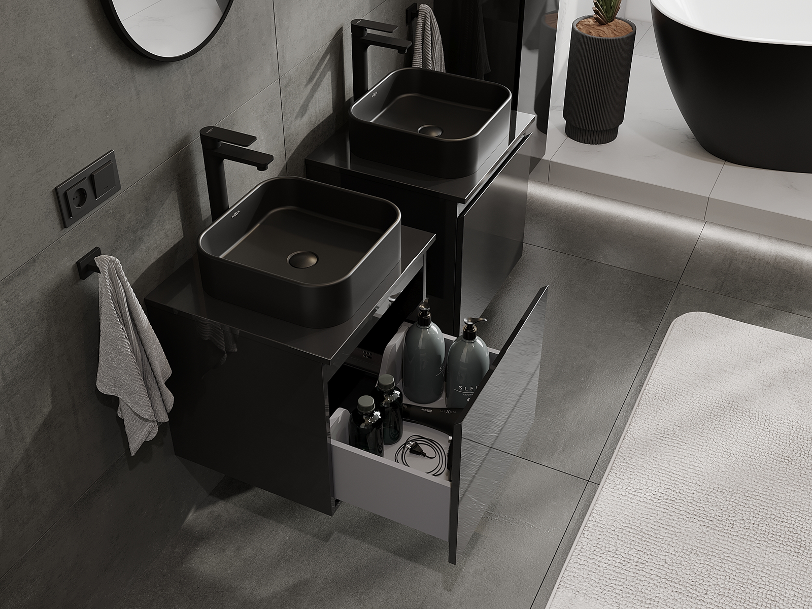 Mūsų moduliniai vonios baldai gali būti derinami tarpusavyje įvairiomis spalvų konfigūracijomis, leidžiant visiškai pritaikyti pagal asmeninius poreikius. Galima pasirinkti tiek atskirų elementų išvaizdą, tiek funkcijas, kas leidžia baldus pritaikyti pagal savo stiliaus ir naudojimo preferencijas.