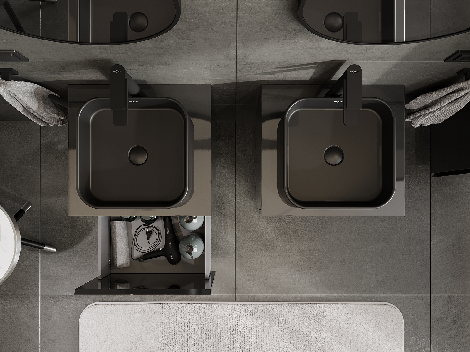 Mexen Orio vonios spintelė po praustuvu 50 cm, 1 stalčius, juodas blizgus - 91A10-05047-1-BF70