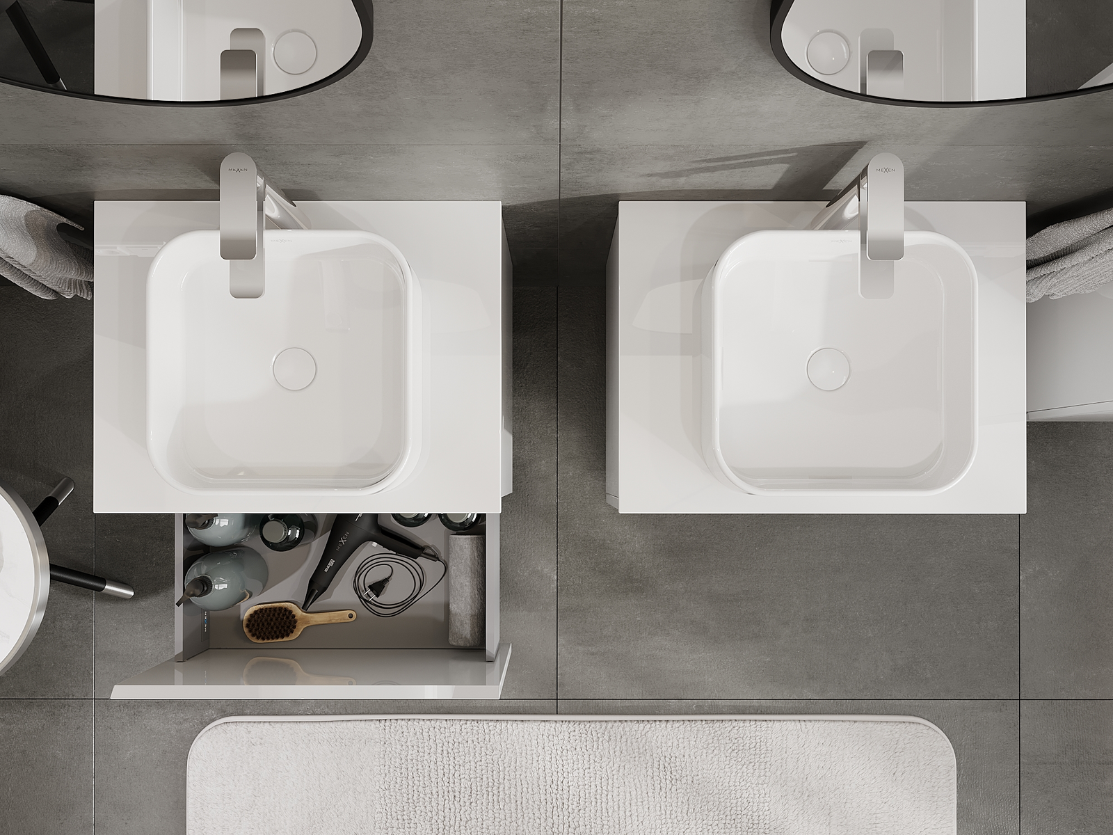 Mexen Orio vonios kambario spintelė po praustuvu 60 cm, 1 stalčius, blizgi balta - 91A10-06047-1-BF00