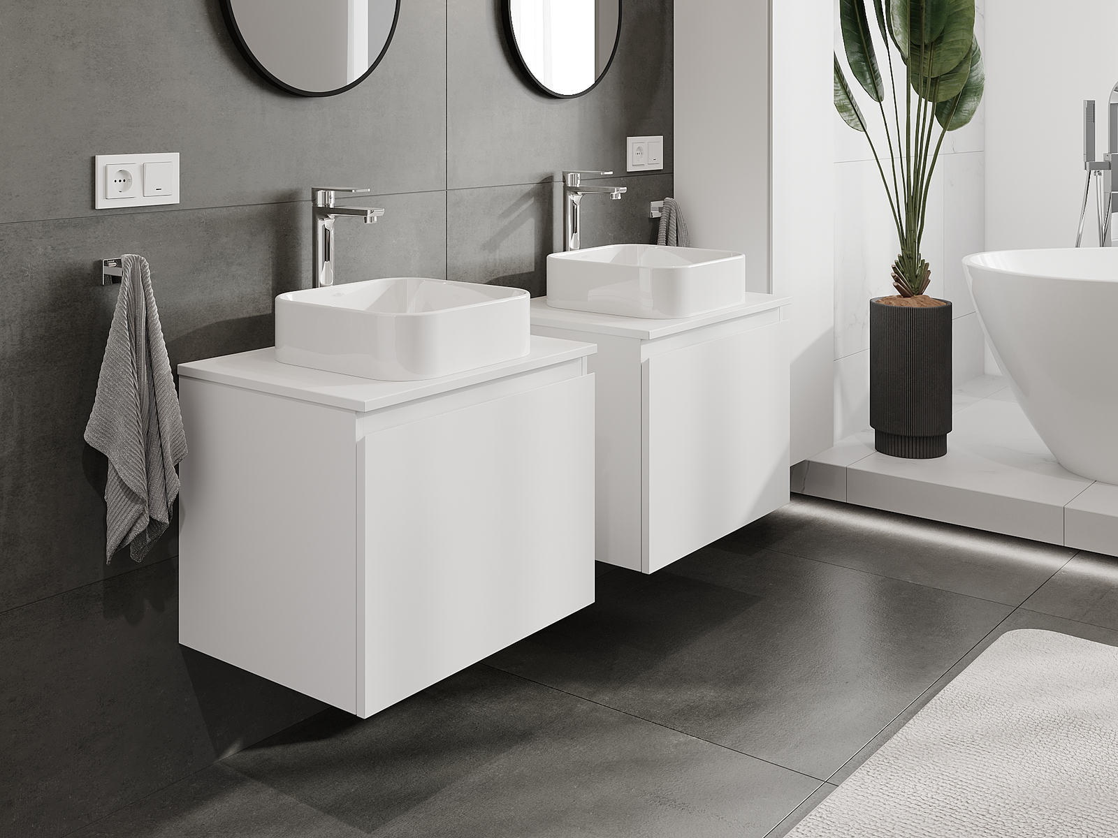 Mūsų moduliniai vonios baldai gali būti derinami tarpusavyje įvairiomis spalvų konfigūracijomis, leidžiant visiškai pritaikyti pagal asmeninius poreikius. Galima pasirinkti tiek atskirų elementų išvaizdą, tiek funkcijas, kas leidžia baldus pritaikyti pagal savo stiliaus ir naudojimo preferencijas.