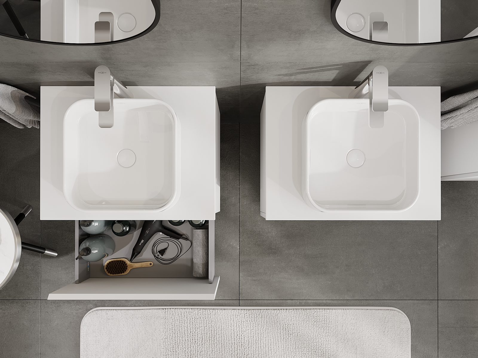 Mexen Orio vonios spintelė po praustuvu 60 cm, 1 stalčius, balta matinė - 91A10-06047-1-BF01
