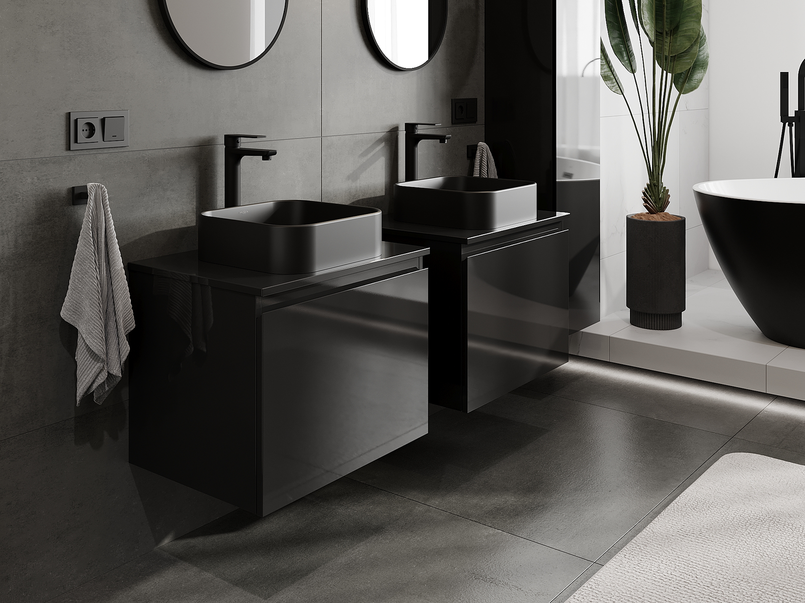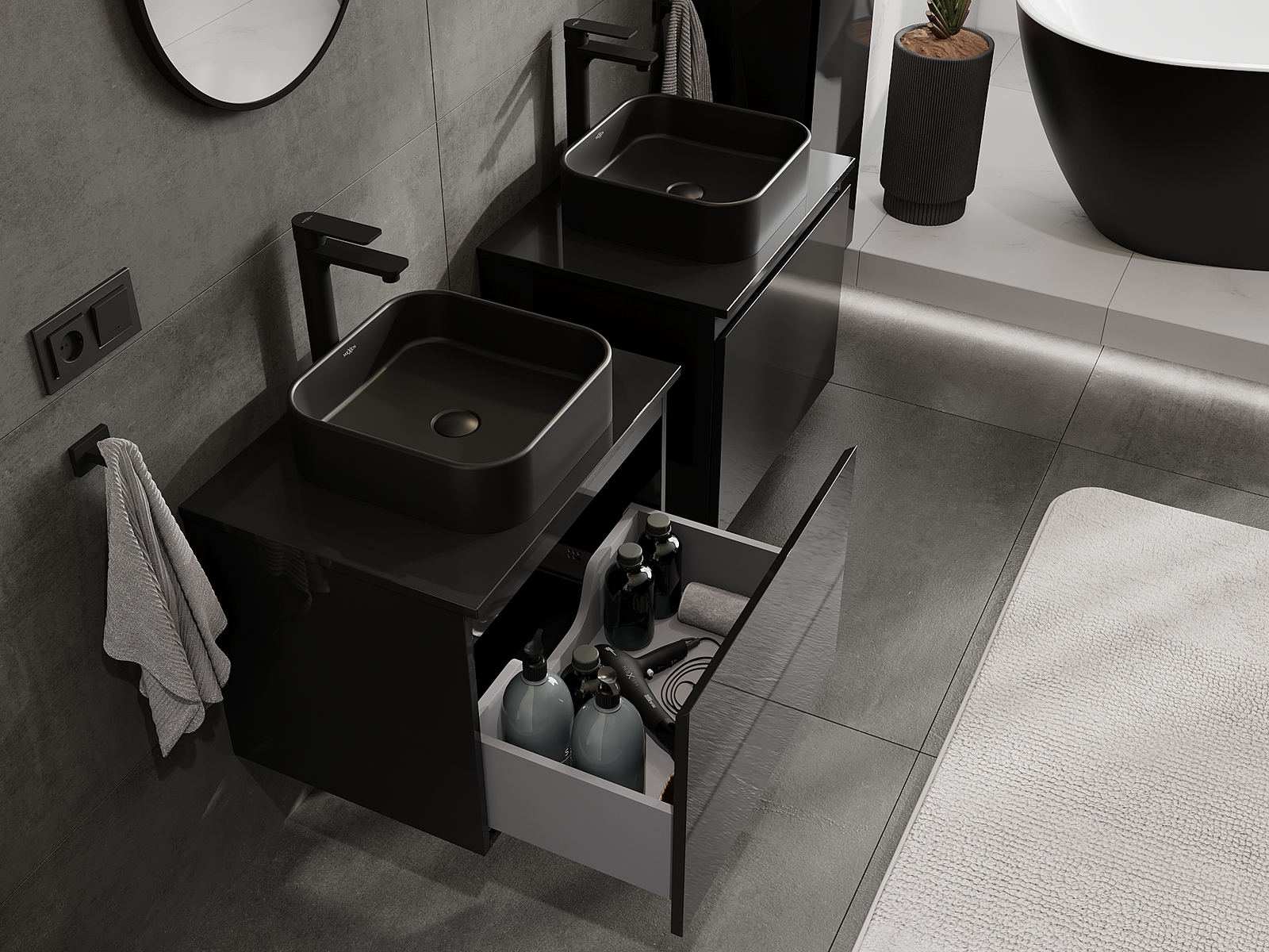Mūsų moduliniai vonios baldai gali būti derinami tarpusavyje įvairiomis spalvų konfigūracijomis, leidžiant visiškai pritaikyti pagal asmeninius poreikius. Galima pasirinkti tiek atskirų elementų išvaizdą, tiek funkcijas, kas leidžia baldus pritaikyti pagal savo stiliaus ir naudojimo preferencijas.