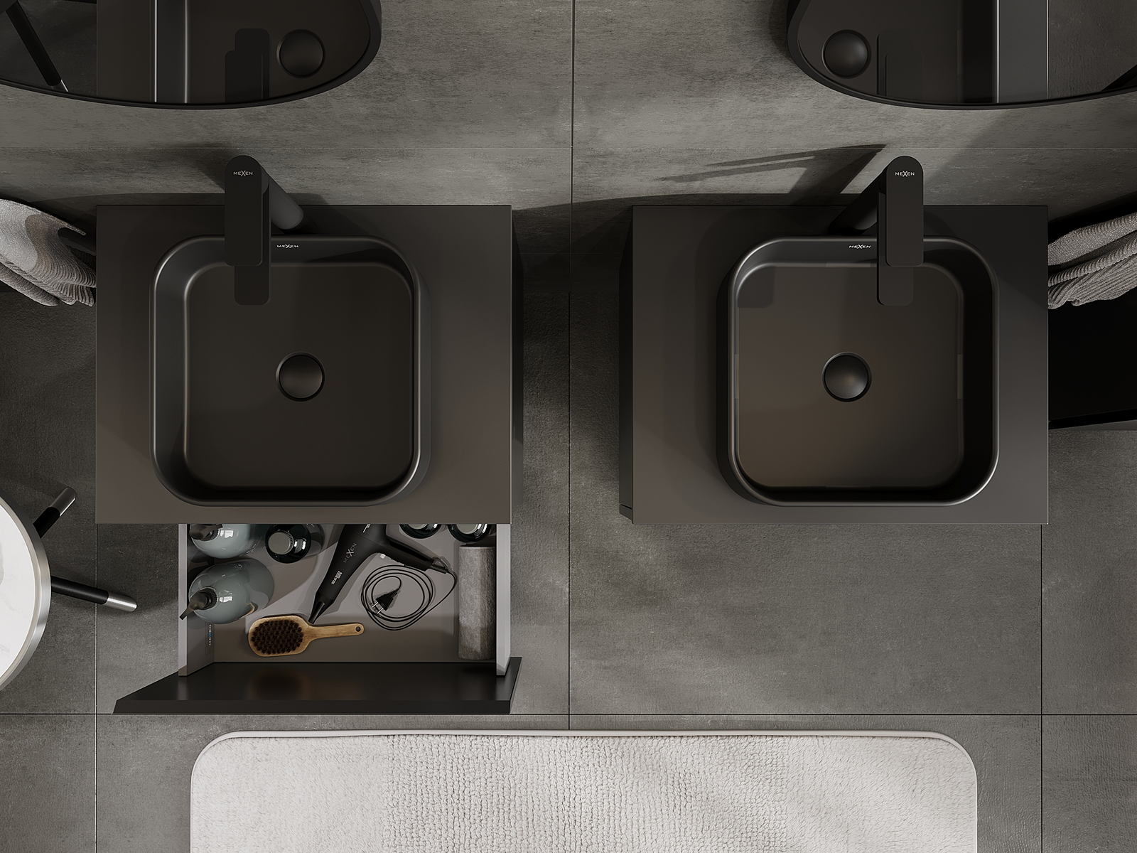 Mexen Orio vonios spintelė po praustuvu 60 cm, 1 stalčius, juodas matinis - 91A10-06047-1-BF71