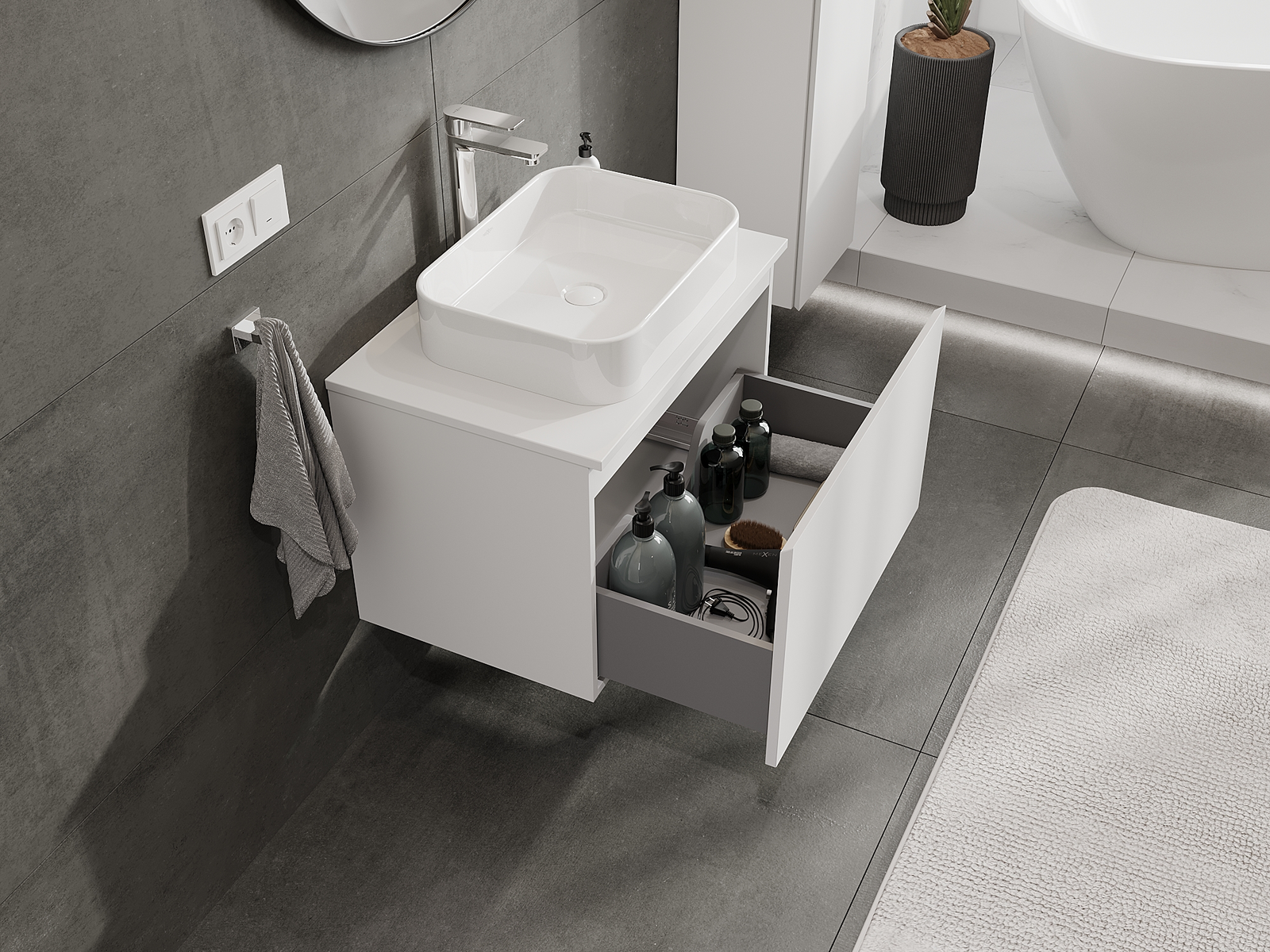 Mūsų moduliniai vonios baldai gali būti derinami tarpusavyje įvairiomis spalvų konfigūracijomis, leidžiant visiškai pritaikyti pagal asmeninius poreikius. Galima pasirinkti tiek atskirų elementų išvaizdą, tiek funkcijas, kas leidžia baldus pritaikyti pagal savo stiliaus ir naudojimo preferencijas.
