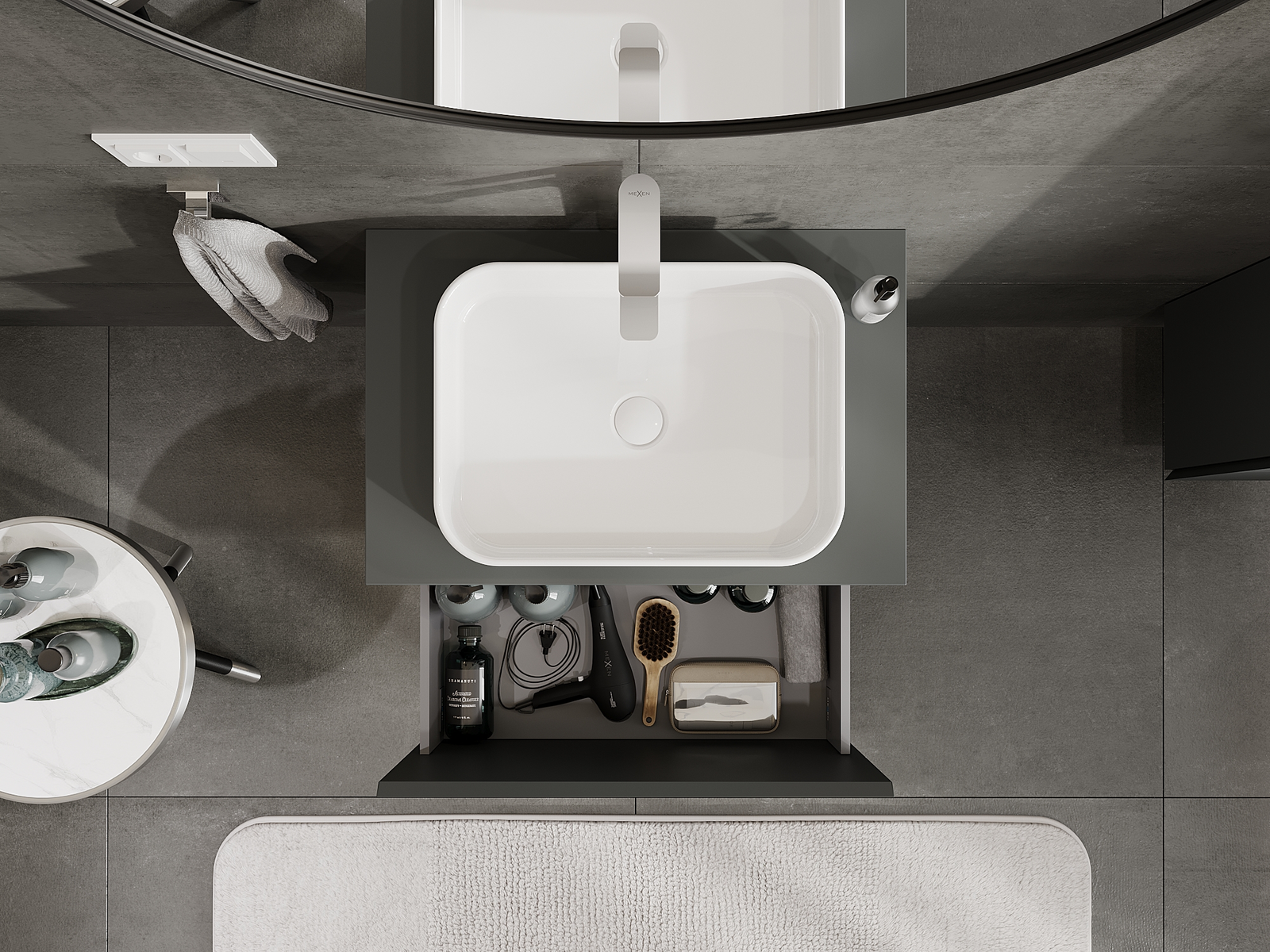 Mexen Orio vonios spintelė po praustuvu 70 cm, 1 stalčius, matinė grafito spalva - 91A10-07047-1-BF66