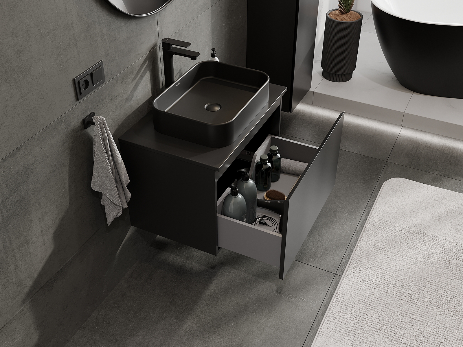 Mexen Orio vonios spintelė po praustuvu 70 cm, 1 stalčius, juoda matinė - 91A10-07047-1-BF71