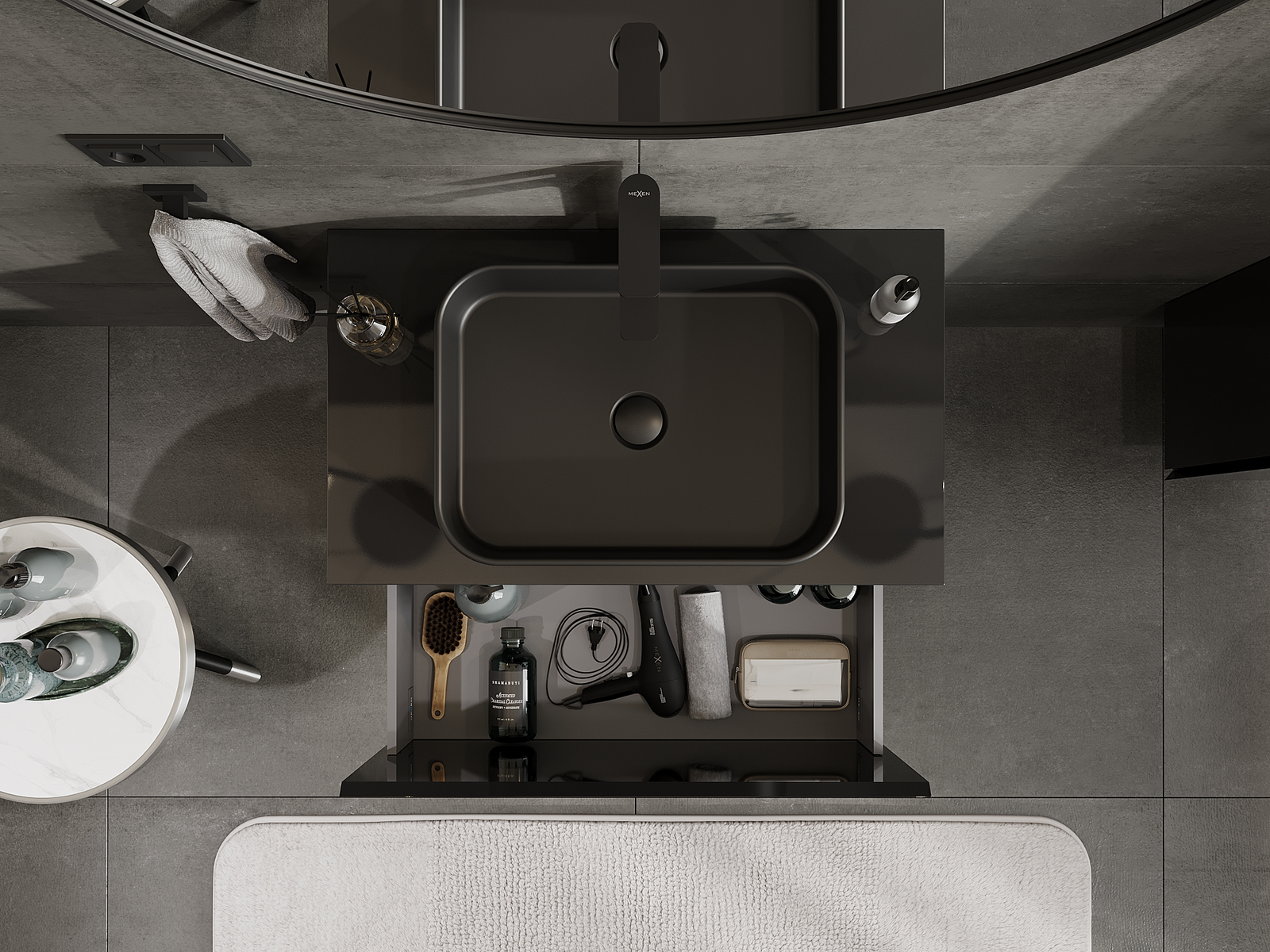 Mexen Orio vonios spintelė po praustuvu 80 cm, 1 stalčius, juodas blizgus - 91A10-08047-1-BF70