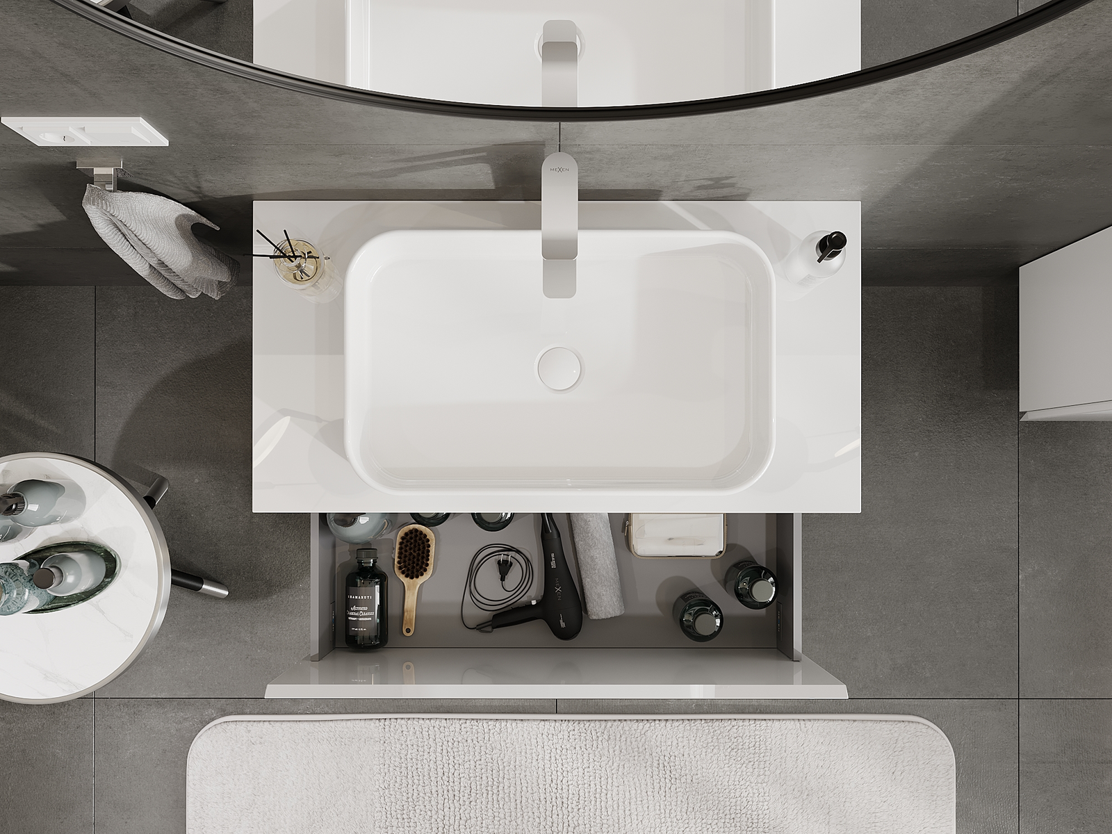 Mexen Orio vonios spintelė po kriaukle 90 cm, 1 stalčius, balta blizgi - 91A10-09047-1-BF00