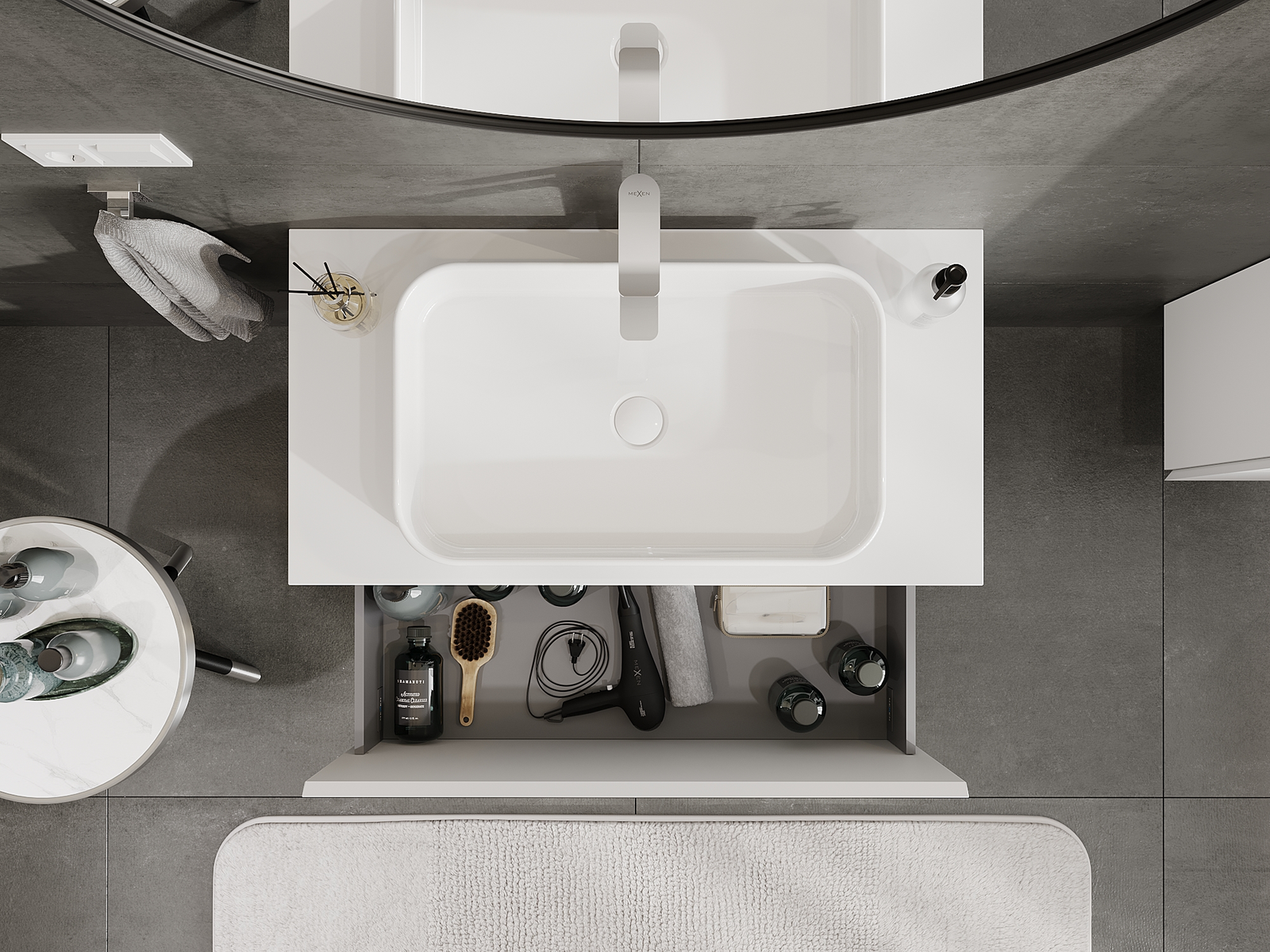 Mūsų moduliniai vonios baldai gali būti derinami tarpusavyje įvairiomis spalvų konfigūracijomis, leidžiant visiškai pritaikyti pagal asmeninius poreikius. Galima pasirinkti tiek atskirų elementų išvaizdą, tiek funkcijas, kas leidžia baldus pritaikyti pagal savo stiliaus ir naudojimo preferencijas.