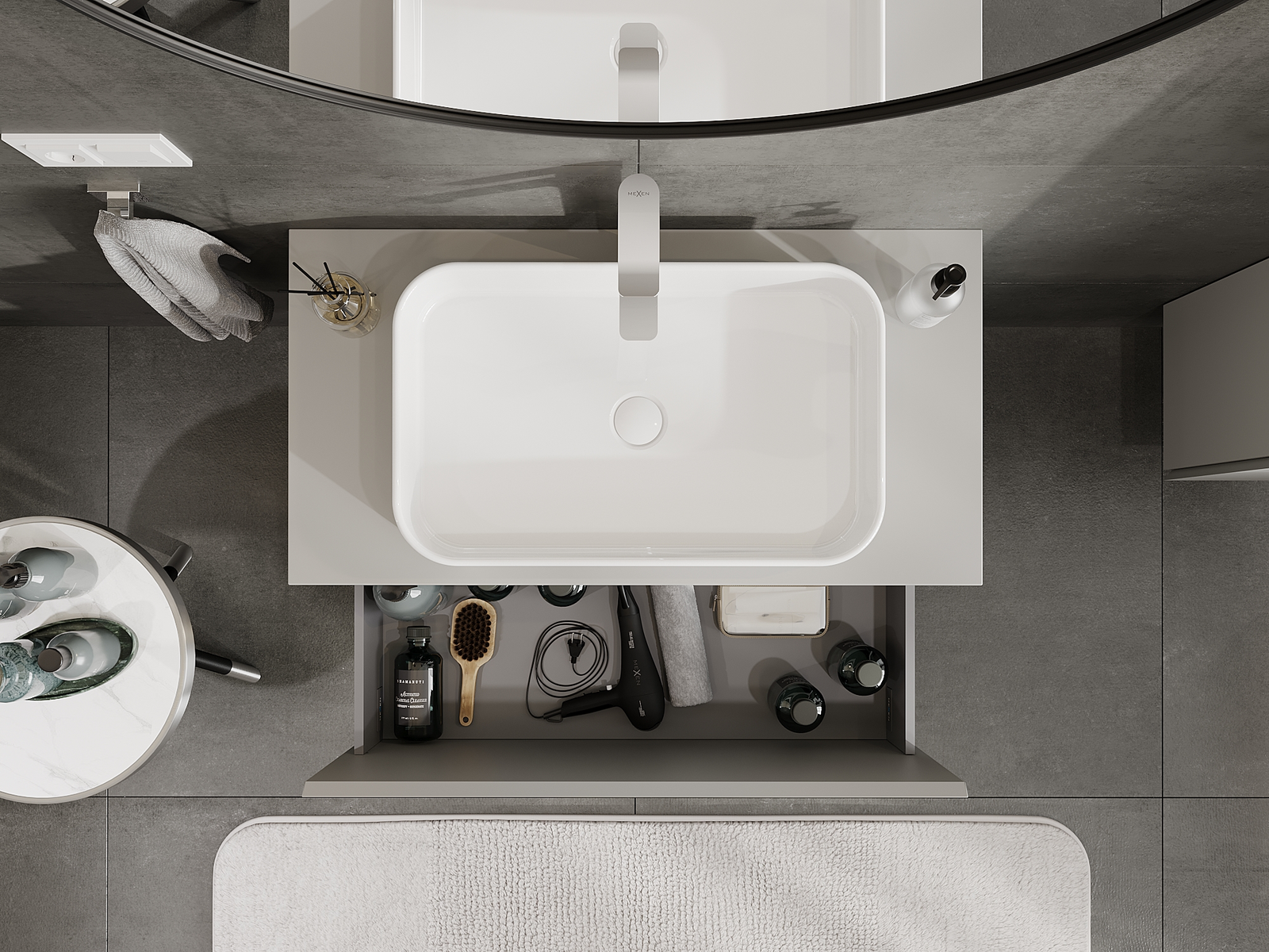 Mexen Orio vonios kambario spintelė praustuvui 90 cm, 1 stalčius, pilka matinė - 91A10-09047-1-BF62