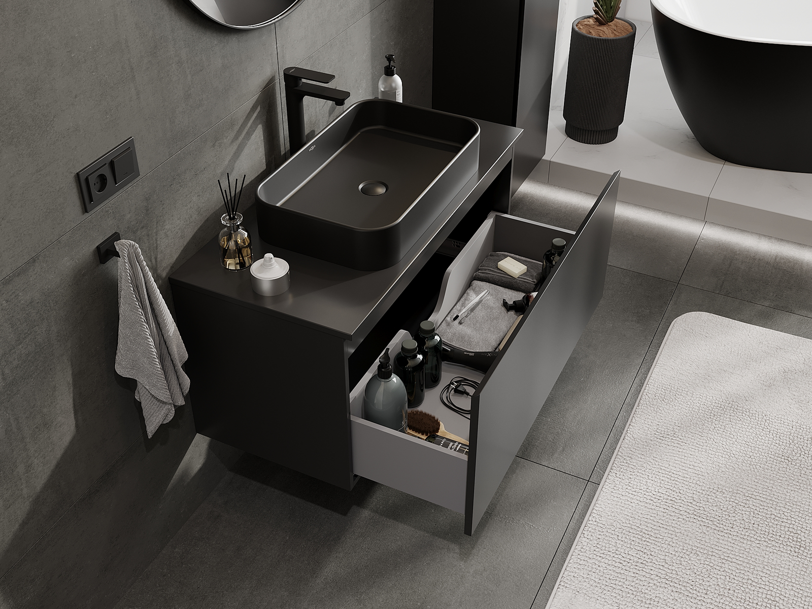 Mūsų moduliniai vonios baldai gali būti derinami tarpusavyje įvairiomis spalvų konfigūracijomis, leidžiant visiškai pritaikyti pagal asmeninius poreikius. Galima pasirinkti tiek atskirų elementų išvaizdą, tiek funkcijas, kas leidžia baldus pritaikyti pagal savo stiliaus ir naudojimo preferencijas.