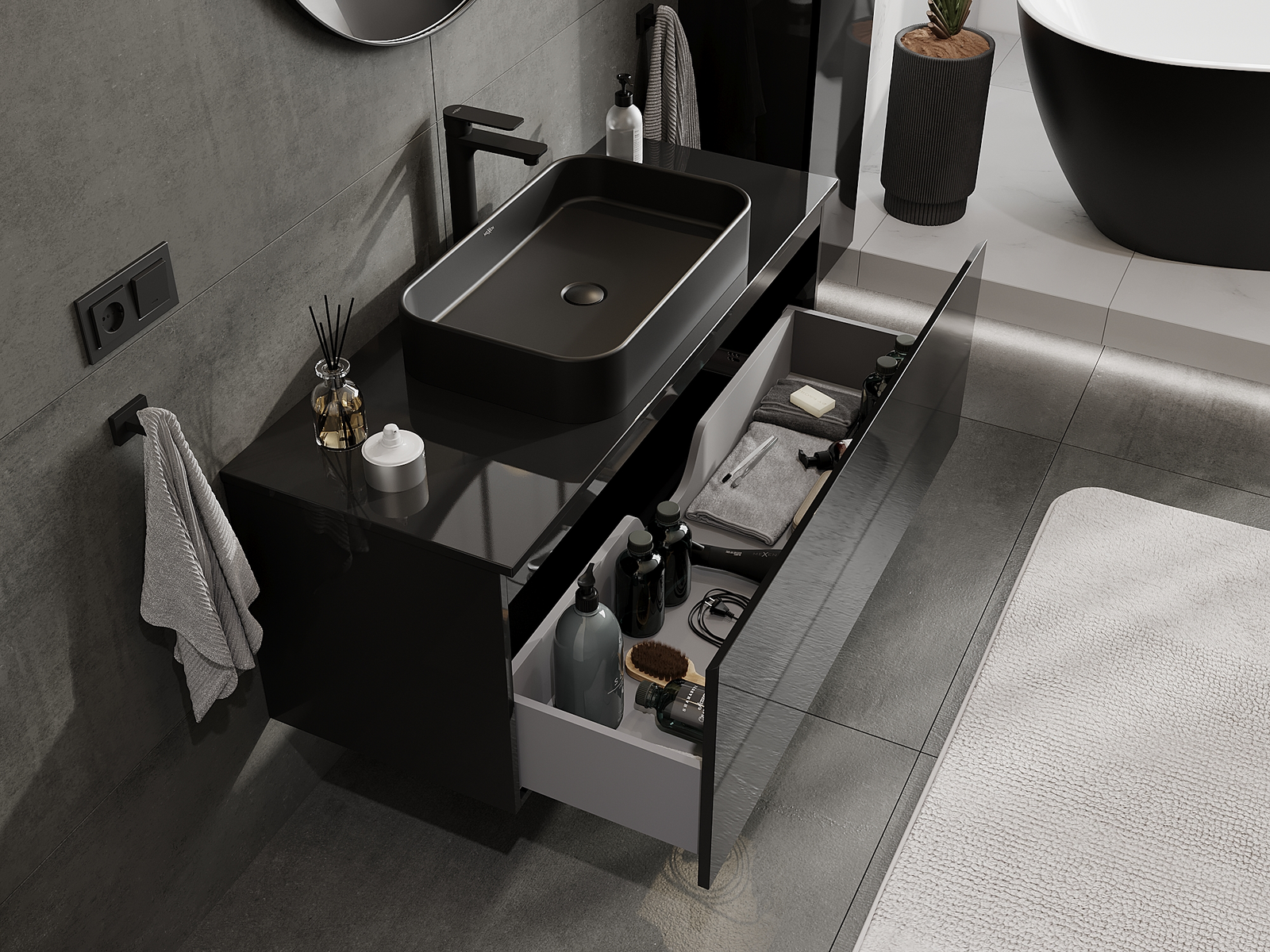 Mexen Orio vonios spintelė po praustuvu 120 cm, 1 stalčius, juoda blizgi - 91A10-12047-1-BF70