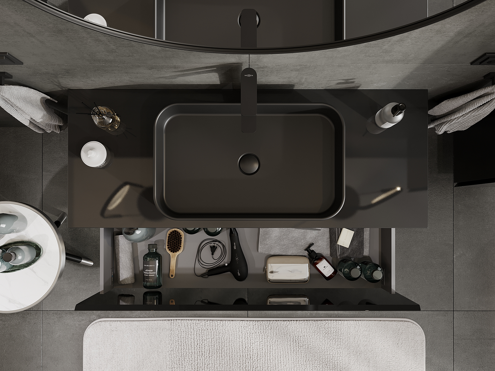 Mūsų moduliniai vonios baldai gali būti derinami tarpusavyje įvairiomis spalvų konfigūracijomis, leidžiant visiškai pritaikyti pagal asmeninius poreikius. Galima pasirinkti tiek atskirų elementų išvaizdą, tiek funkcijas, kas leidžia baldus pritaikyti pagal savo stiliaus ir naudojimo preferencijas.