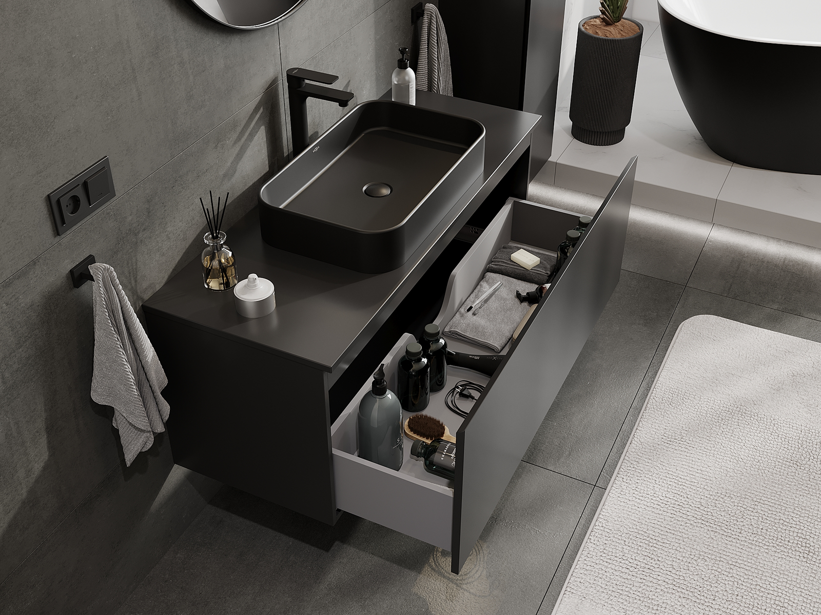 Mūsų moduliniai vonios baldai gali būti derinami tarpusavyje įvairiomis spalvų konfigūracijomis, leidžiant visiškai pritaikyti pagal asmeninius poreikius. Galima pasirinkti tiek atskirų elementų išvaizdą, tiek funkcijas, kas leidžia baldus pritaikyti pagal savo stiliaus ir naudojimo preferencijas.