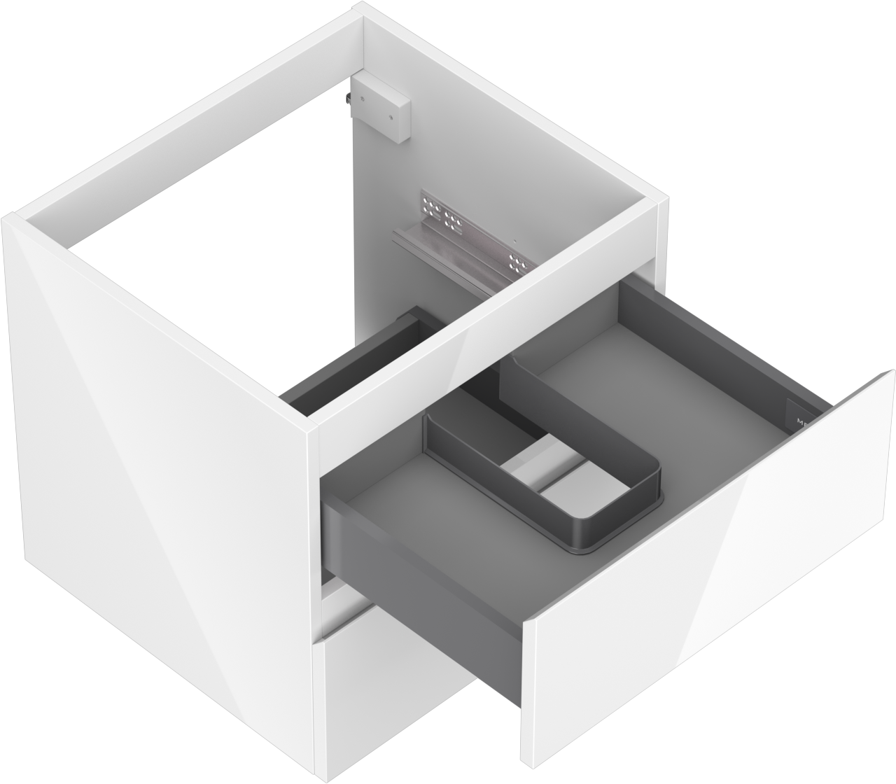 Iškirpimas stalčiuje yra suprojektuotas taip, kad tilptų sifonas, kuris yra būtinas kriauklės įrenginiuose. Dėl to baldas gali būti pilnai funkcionaliai sumontuotas, nereikalaujant atsisakyti vietos stalčiuje dėl įrenginio.