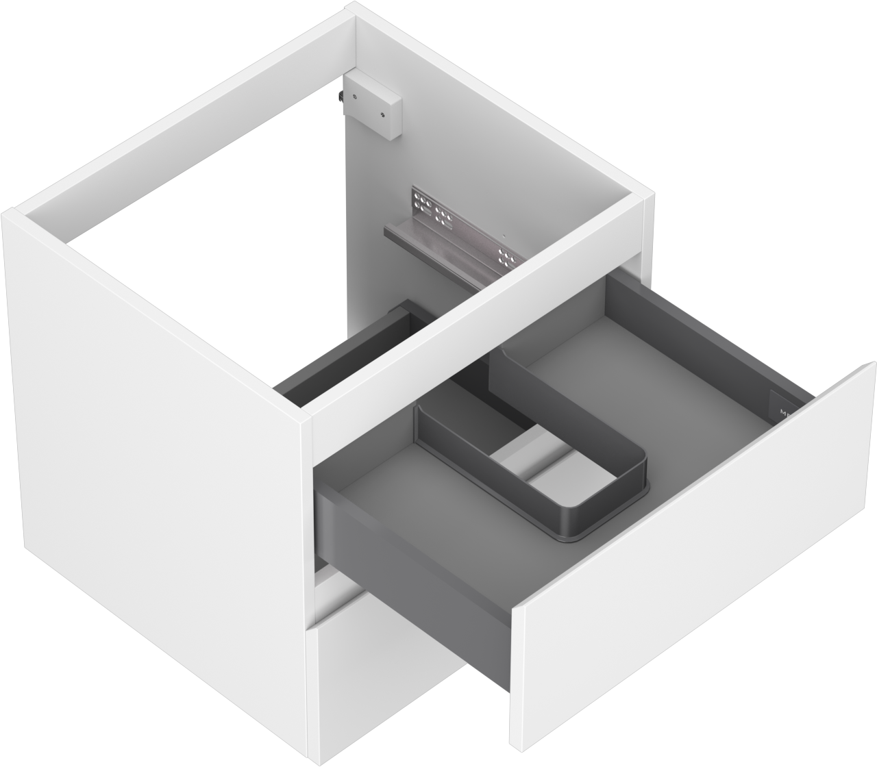 Iškirpimas stalčiuje yra suprojektuotas taip, kad tilptų sifonas, kuris yra būtinas kriauklės įrenginiuose. Dėl to baldas gali būti pilnai funkcionaliai sumontuotas, nereikalaujant atsisakyti vietos stalčiuje dėl įrenginio.