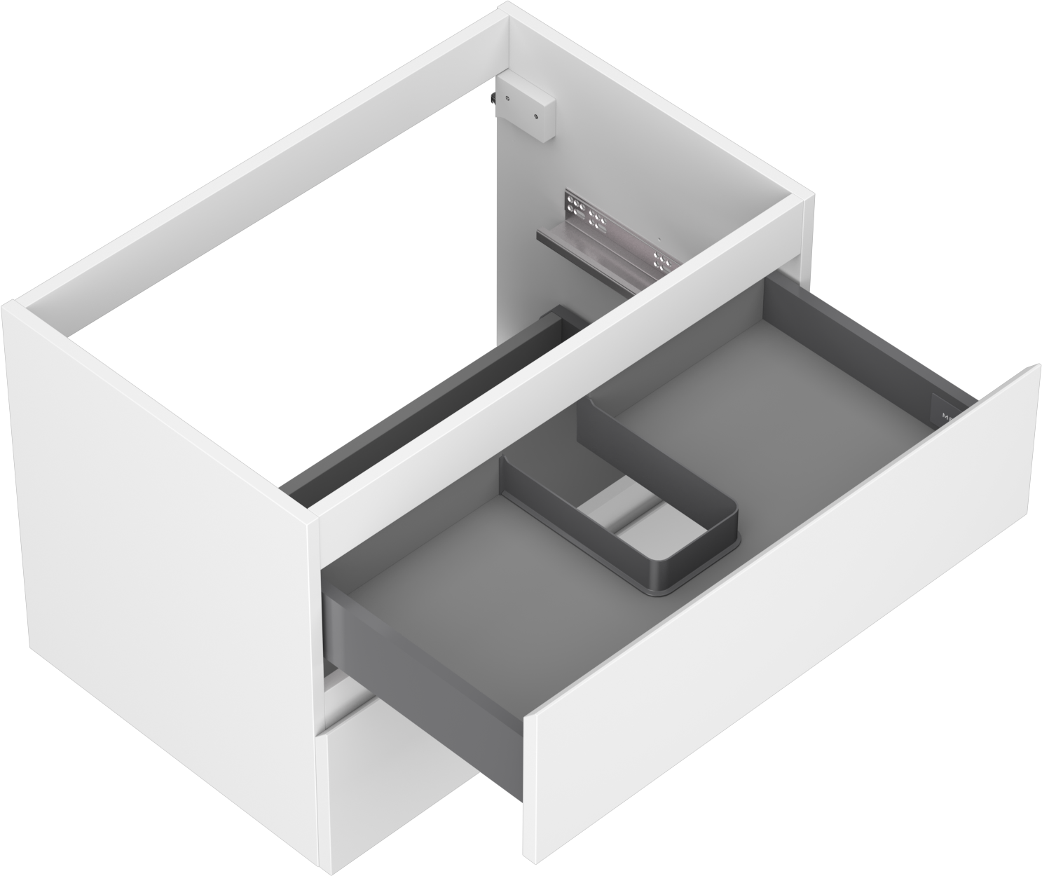 Iškirpimas stalčiuje yra suprojektuotas taip, kad tilptų sifonas, kuris yra būtinas kriauklės įrenginiuose. Dėl to baldas gali būti pilnai funkcionaliai sumontuotas, nereikalaujant atsisakyti vietos stalčiuje dėl įrenginio.