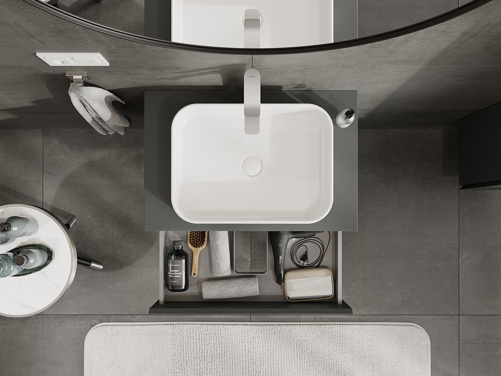 Mūsų moduliniai vonios baldai gali būti derinami tarpusavyje įvairiomis spalvų konfigūracijomis, leidžiant visiškai pritaikyti pagal asmeninius poreikius. Galima pasirinkti tiek atskirų elementų išvaizdą, tiek funkcijas, kas leidžia baldus pritaikyti pagal savo stiliaus ir naudojimo preferencijas.