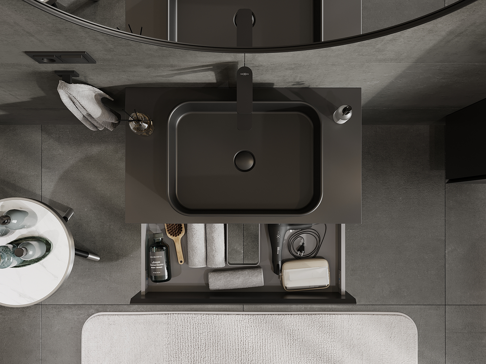 Mūsų moduliniai vonios baldai gali būti derinami tarpusavyje įvairiomis spalvų konfigūracijomis, leidžiant visiškai pritaikyti pagal asmeninius poreikius. Galima pasirinkti tiek atskirų elementų išvaizdą, tiek funkcijas, kas leidžia baldus pritaikyti pagal savo stiliaus ir naudojimo preferencijas.