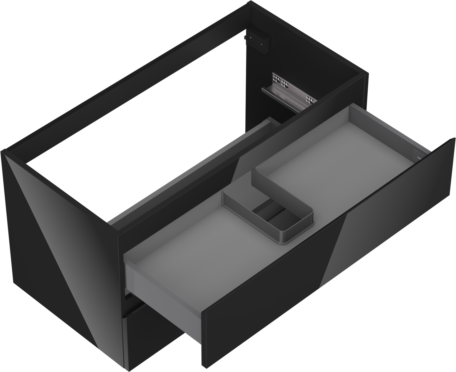 Mexen Orio vonios kambario spintelė po praustuvu 90 cm, 2 stalčiai, juodas blizgesys - 91A10-09047-2-BFF70