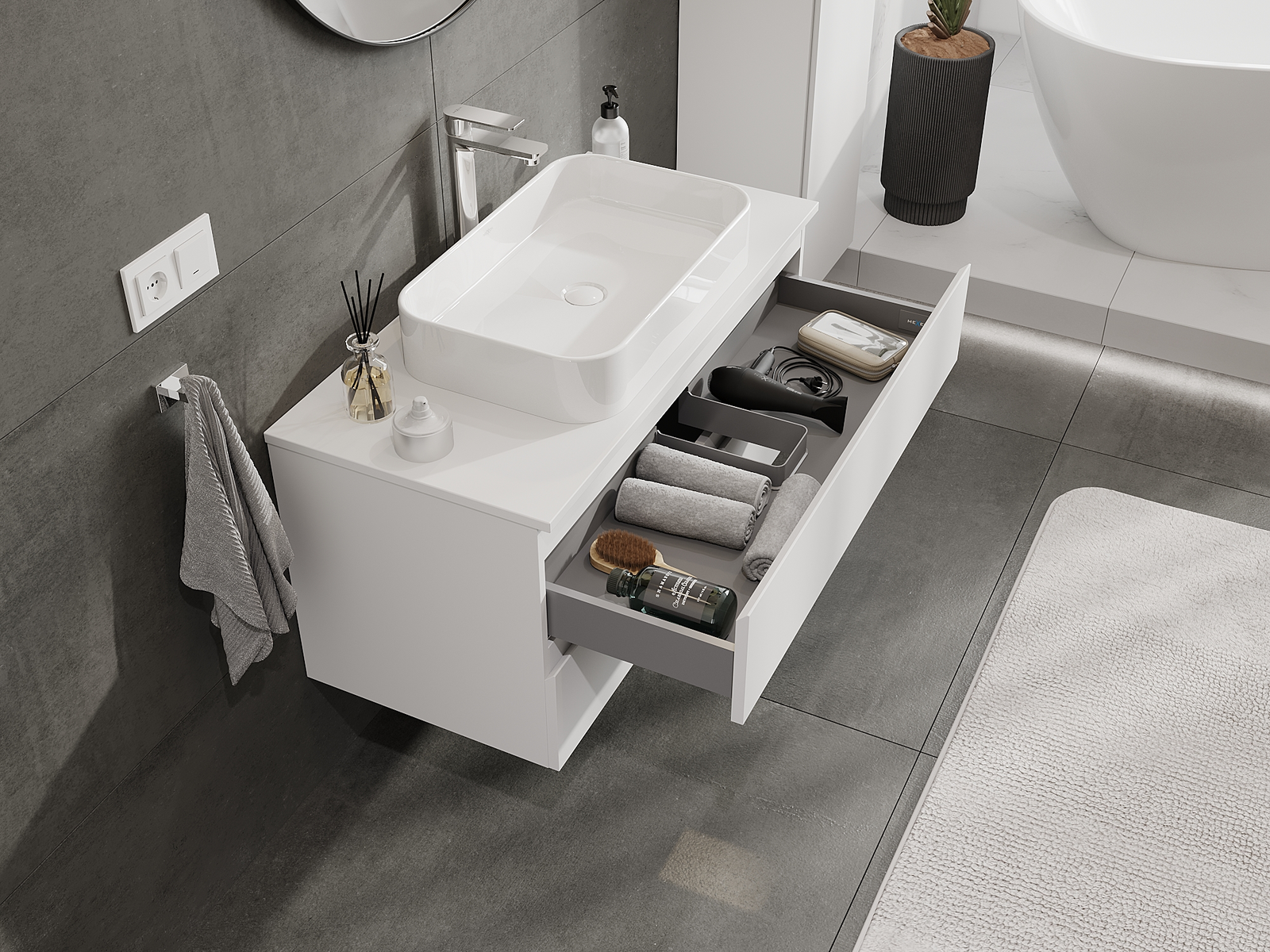Dėl tvirtų medžiagų, preciziško atlikimo ir šiuolaikinių technologinių sprendimų, produktas užtikrina patogų naudojimą, atsparumą drėgmei ir temperatūros pokyčiams, taip pat elegantišką išvaizdą, kuri tinka įvairiems vonios kambario stiliams.