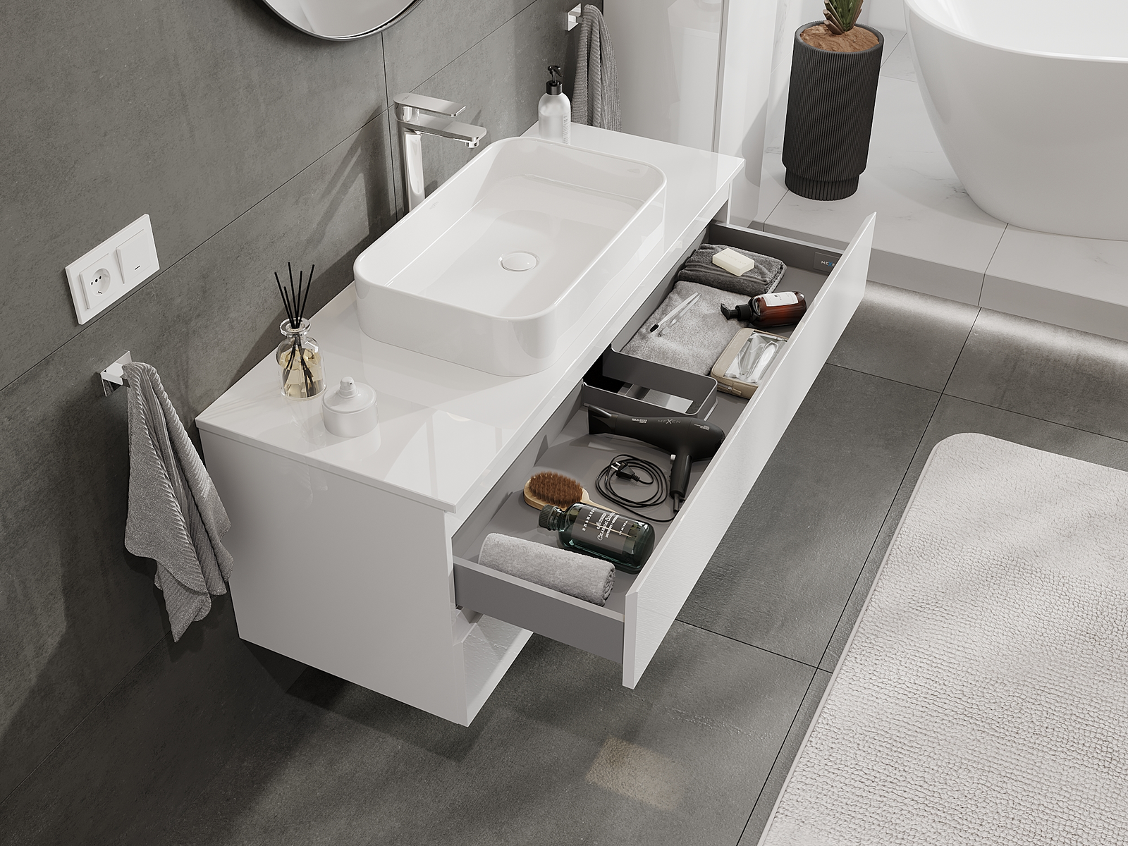 Dėl tvirtų medžiagų, preciziško atlikimo ir šiuolaikinių technologinių sprendimų, produktas užtikrina patogų naudojimą, atsparumą drėgmei ir temperatūros pokyčiams, taip pat elegantišką išvaizdą, kuri tinka įvairiems vonios kambario stiliams.
