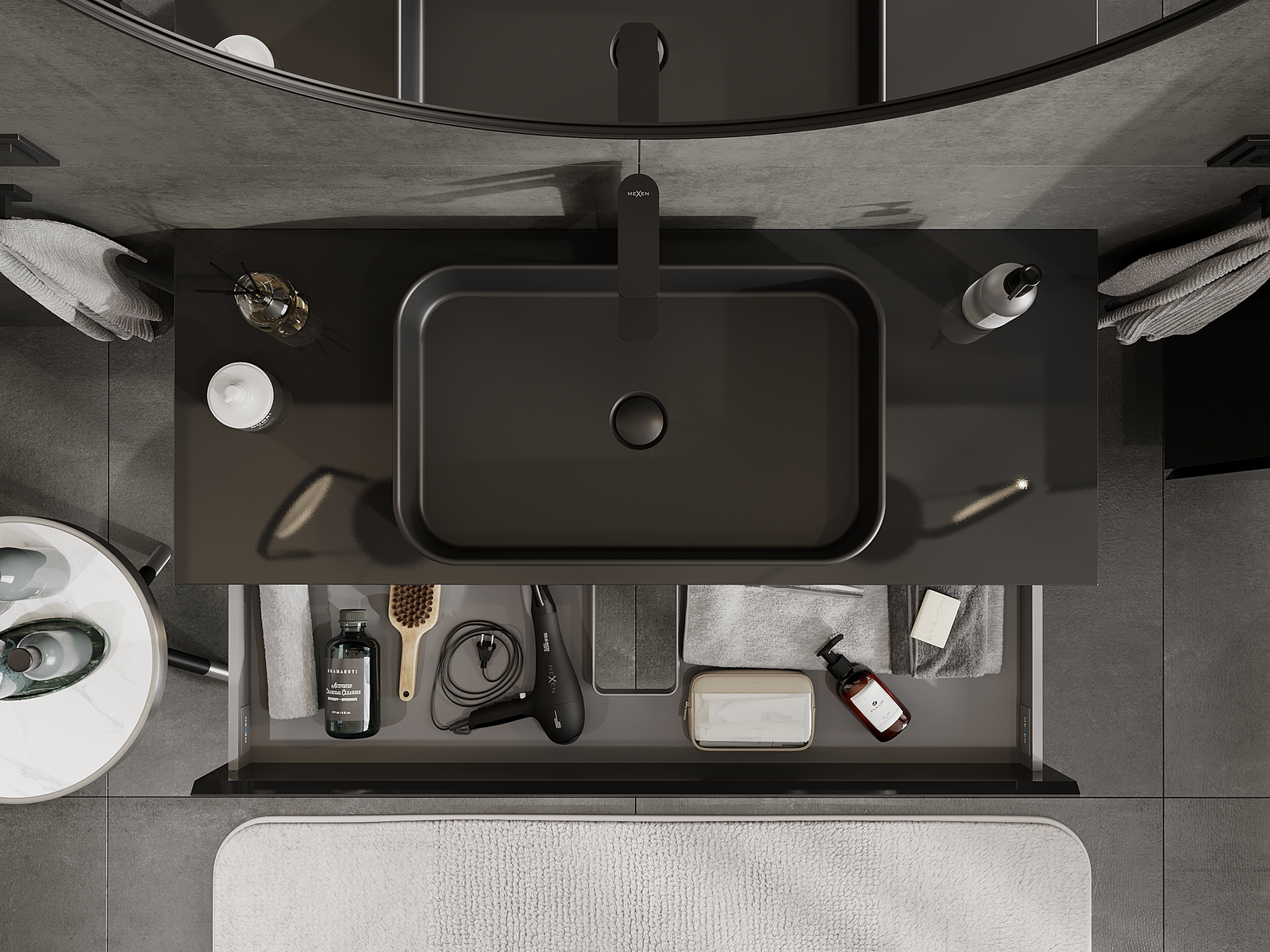 Mūsų moduliniai vonios baldai gali būti derinami tarpusavyje įvairiomis spalvų konfigūracijomis, leidžiant visiškai pritaikyti pagal asmeninius poreikius. Galima pasirinkti tiek atskirų elementų išvaizdą, tiek funkcijas, kas leidžia baldus pritaikyti pagal savo stiliaus ir naudojimo preferencijas.