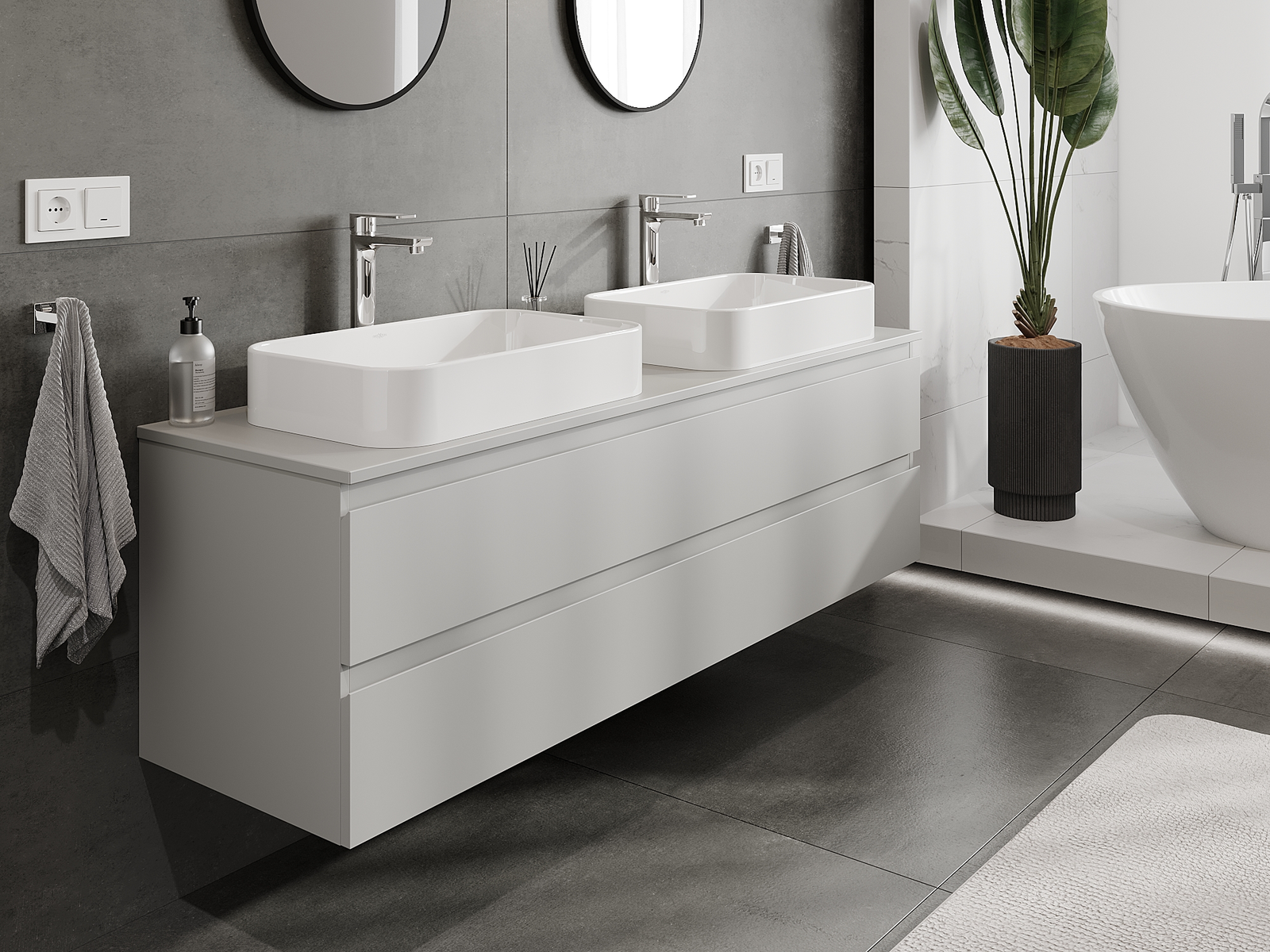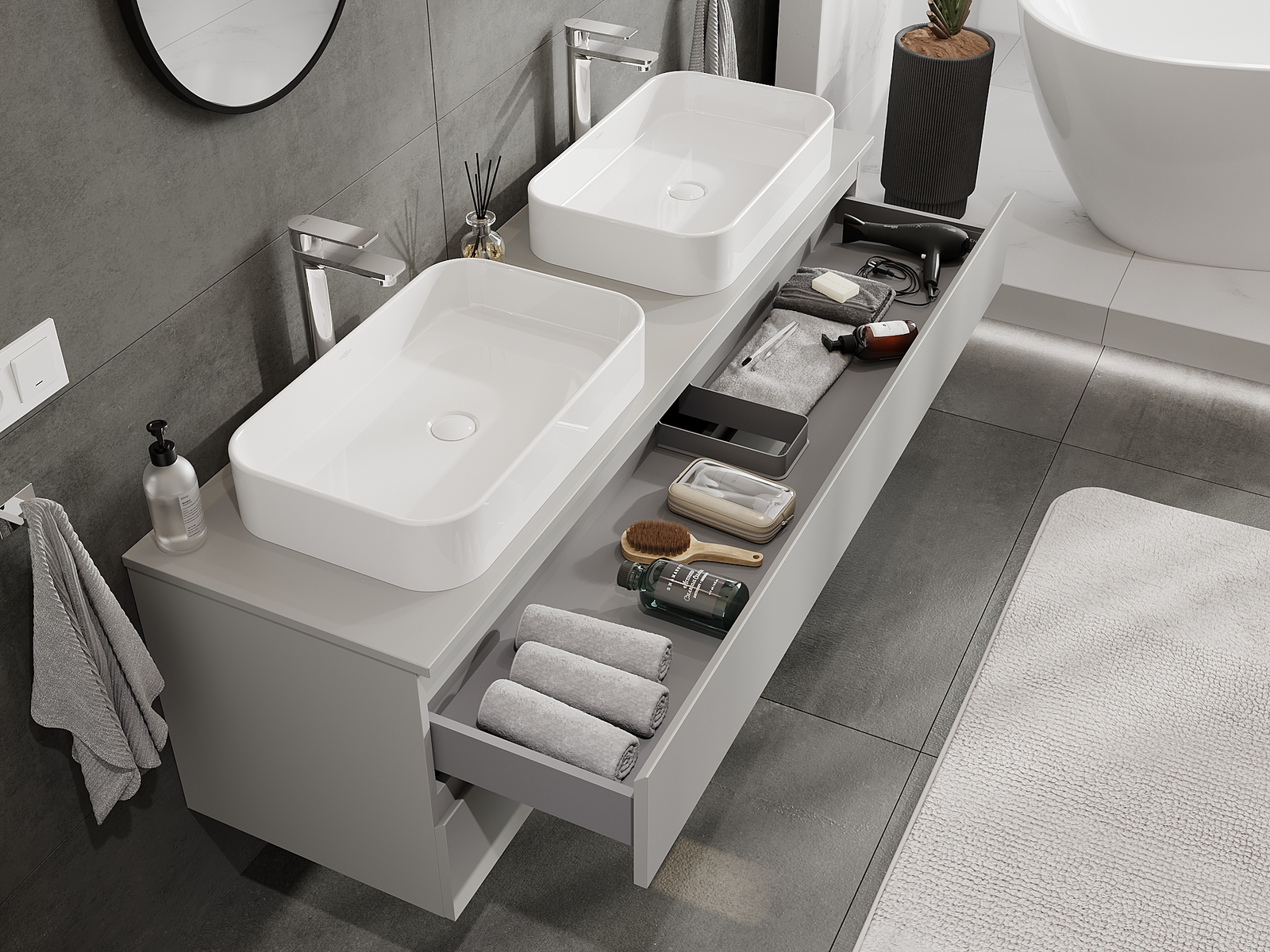 Mūsų moduliniai vonios baldai gali būti derinami tarpusavyje įvairiomis spalvų konfigūracijomis, leidžiant visiškai pritaikyti pagal asmeninius poreikius. Galima pasirinkti tiek atskirų elementų išvaizdą, tiek funkcijas, kas leidžia baldus pritaikyti pagal savo stiliaus ir naudojimo preferencijas.