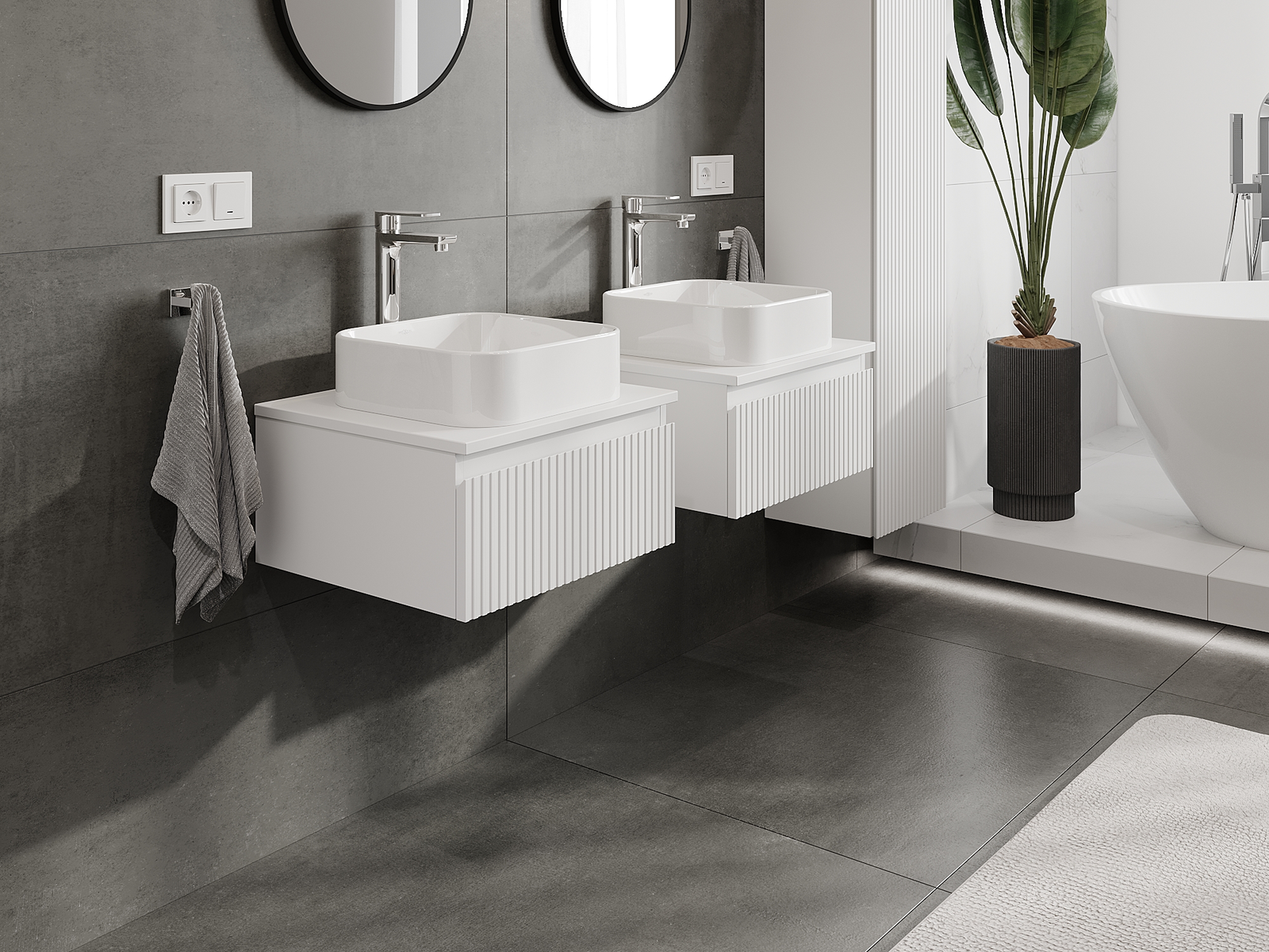 Mūsų moduliniai vonios baldai gali būti derinami tarpusavyje įvairiomis spalvų konfigūracijomis, leidžiant visiškai pritaikyti pagal asmeninius poreikius. Galima pasirinkti tiek atskirų elementų išvaizdą, tiek funkcijas, kas leidžia baldus pritaikyti pagal savo stiliaus ir naudojimo preferencijas.