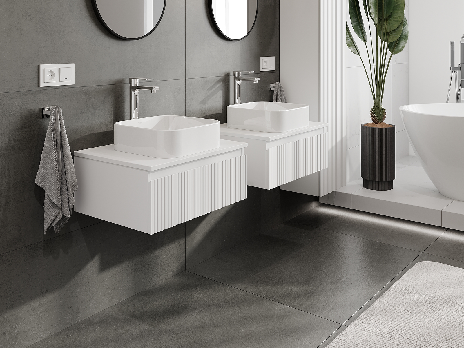 Mūsų moduliniai vonios baldai gali būti derinami tarpusavyje įvairiomis spalvų konfigūracijomis, leidžiant visiškai pritaikyti pagal asmeninius poreikius. Galima pasirinkti tiek atskirų elementų išvaizdą, tiek funkcijas, kas leidžia baldus pritaikyti pagal savo stiliaus ir naudojimo preferencijas.