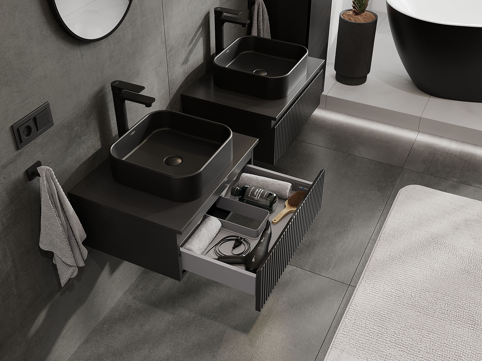 Mexen Rivel vonios spintelė po praustuvu 60 cm, 1 stalčius, grioveliais, juoda matinė - 91A20-06023-1-BF71