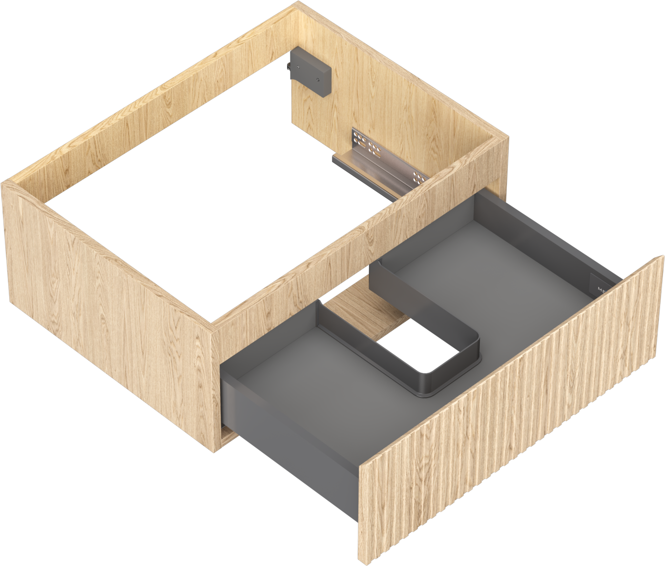 Iškirpimas stalčiuje yra suprojektuotas taip, kad tilptų sifonas, kuris yra būtinas kriauklės įrenginiuose. Dėl to baldas gali būti pilnai funkcionaliai sumontuotas, nereikalaujant atsisakyti vietos stalčiuje dėl įrenginio.