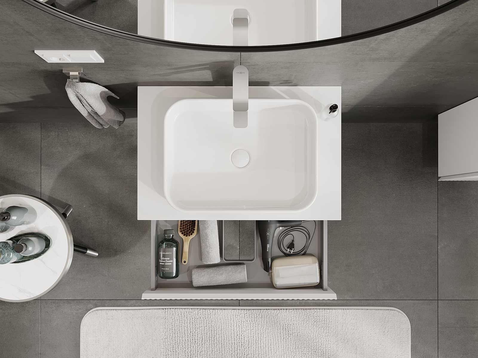 Mexen Rivel vonios spintelė po praustuvu 70 cm, 1 stalčius, grotelinis, matinė balta - 91A20-07023-1-BF01