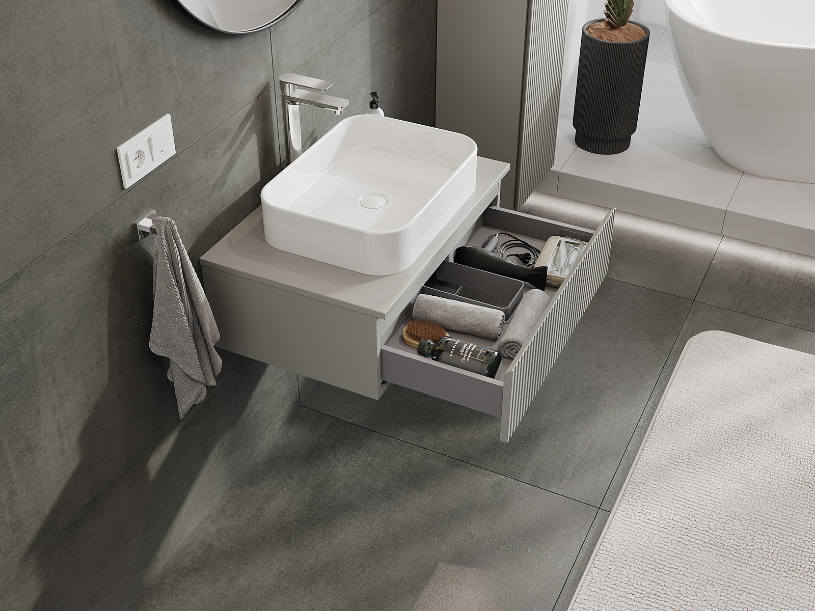 Mexen Rivel vonios spintelė po praustuvu 70 cm, 1 stalčius, rifliuota, pilka matinė - 91A20-07023-1-BF62