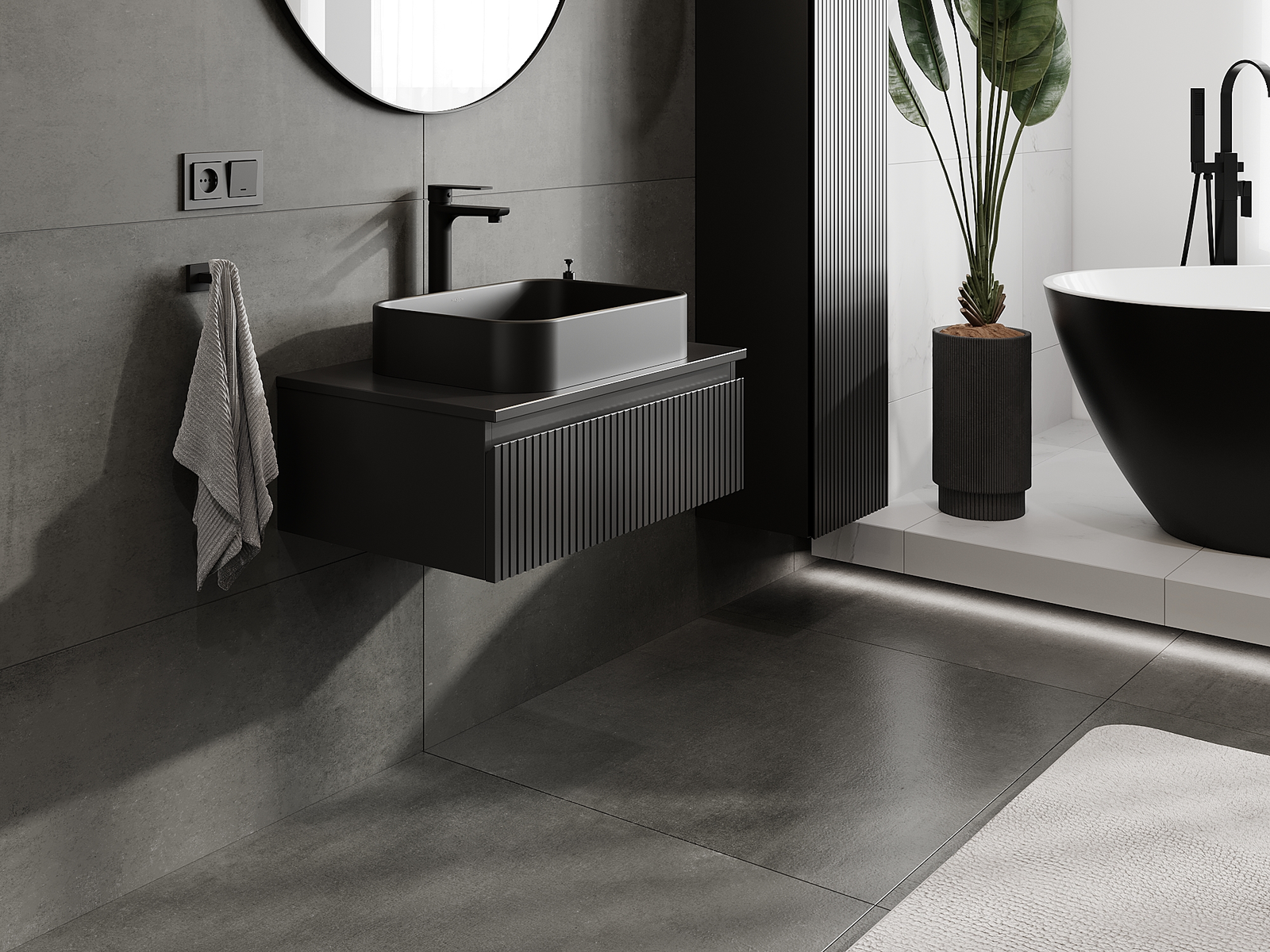 Mexen Rivel vonios spintelė po kriaukle 70 cm, 1 stalčius, gofruota, matinės grafitas - 91A20-07023-1-BF71