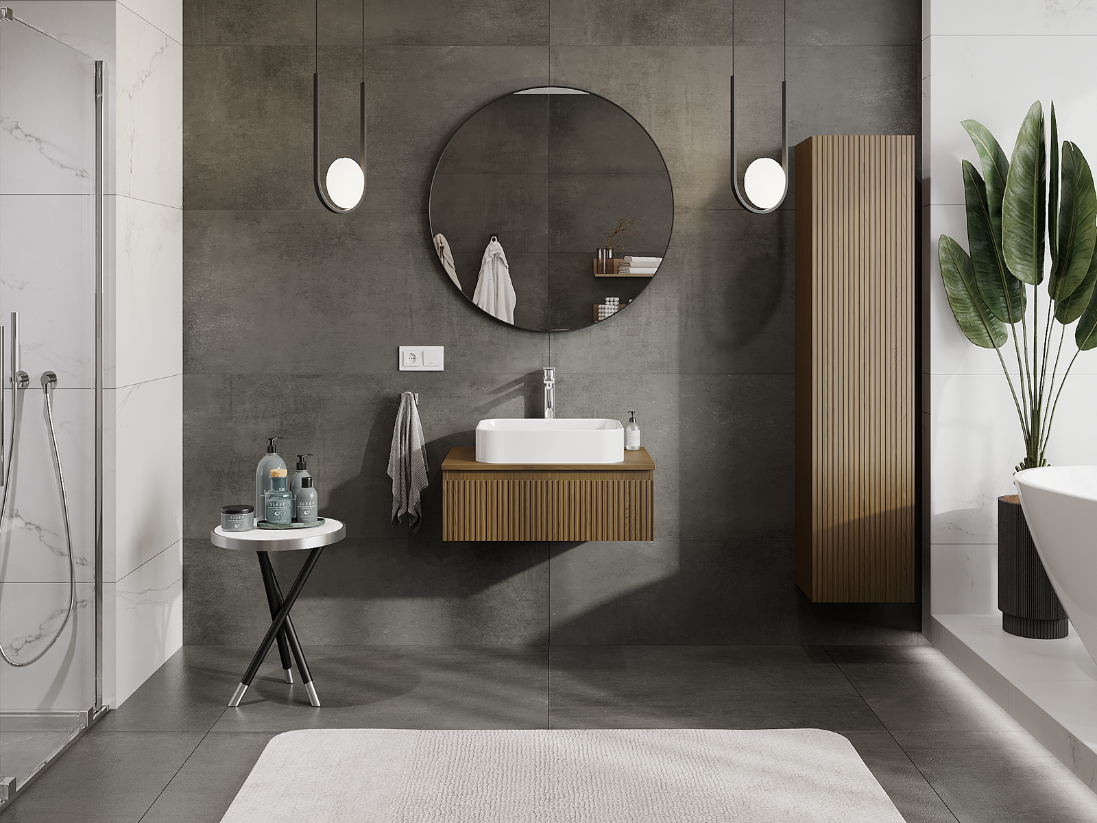 Mūsų moduliniai vonios baldai gali būti derinami tarpusavyje įvairiomis spalvų konfigūracijomis, leidžiant visiškai pritaikyti pagal asmeninius poreikius. Galima pasirinkti tiek atskirų elementų išvaizdą, tiek funkcijas, kas leidžia baldus pritaikyti pagal savo stiliaus ir naudojimo preferencijas.