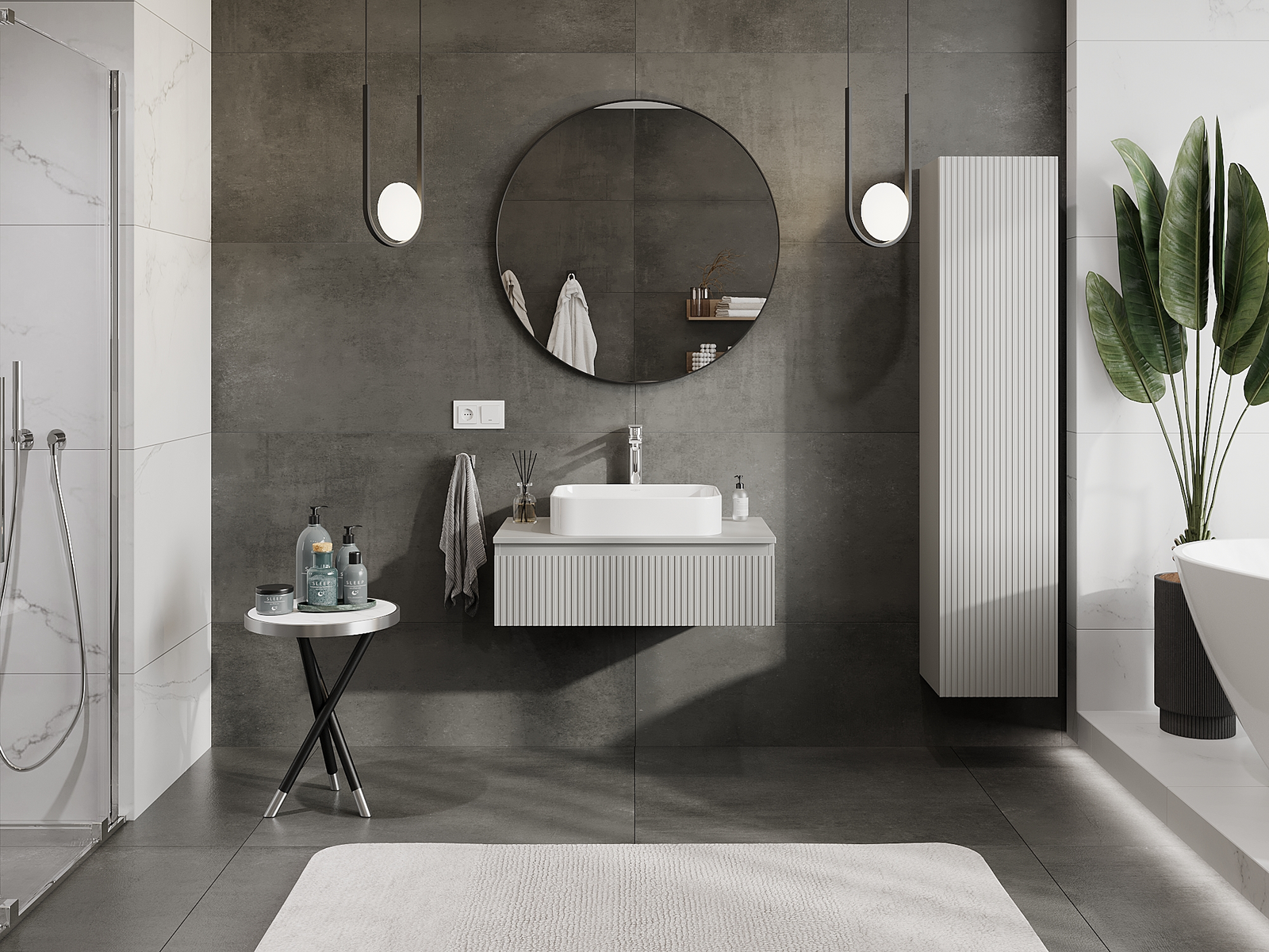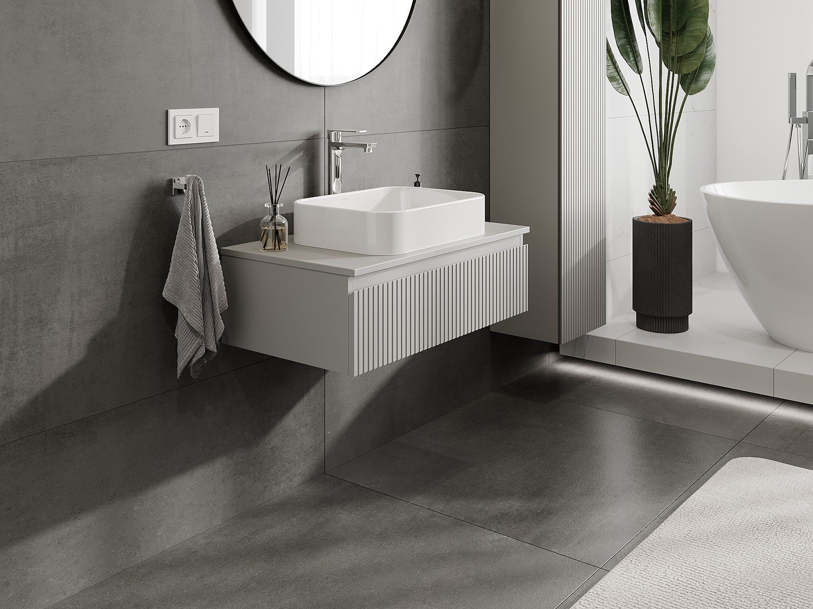 Mūsų moduliniai vonios baldai gali būti derinami tarpusavyje įvairiomis spalvų konfigūracijomis, leidžiant visiškai pritaikyti pagal asmeninius poreikius. Galima pasirinkti tiek atskirų elementų išvaizdą, tiek funkcijas, kas leidžia baldus pritaikyti pagal savo stiliaus ir naudojimo preferencijas.