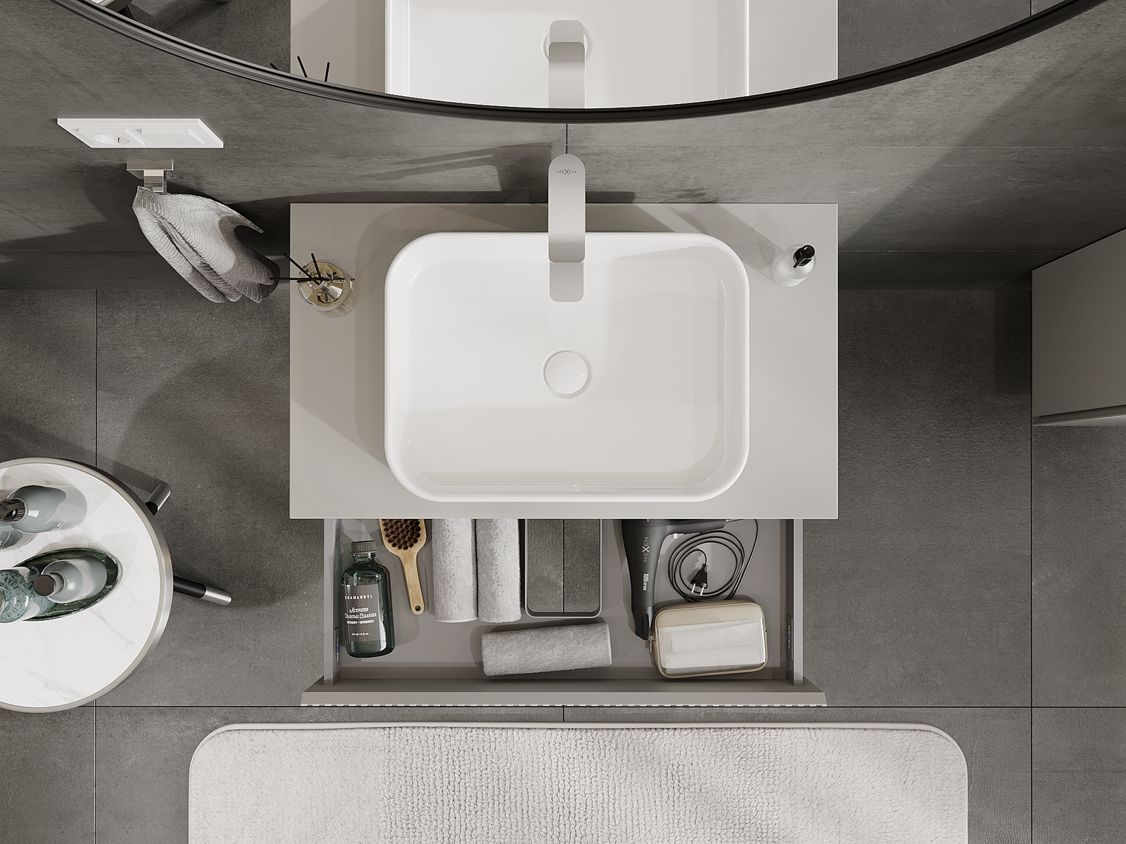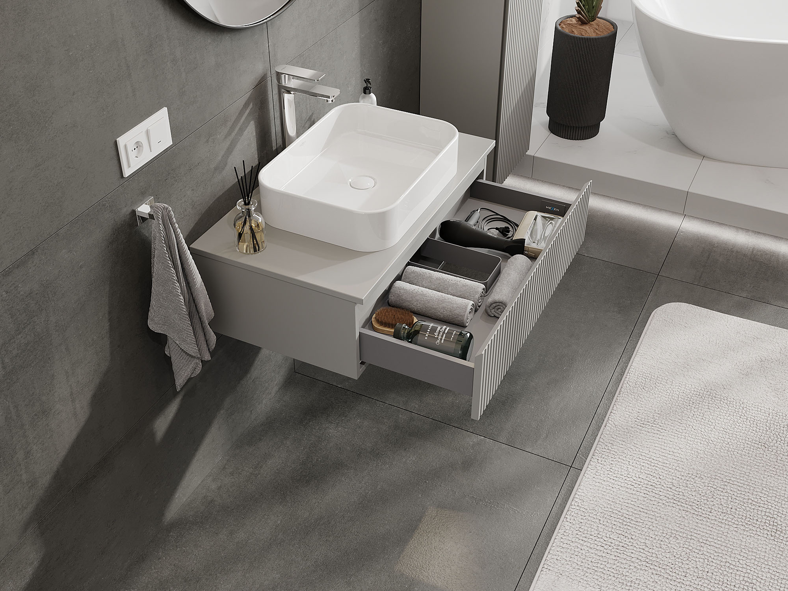 Mexen Rivel vonios kambario spintelė po praustuvu 80 cm, 1 stalčius, rifliuota, pilka matinė - 91A20-08023-1-BF62