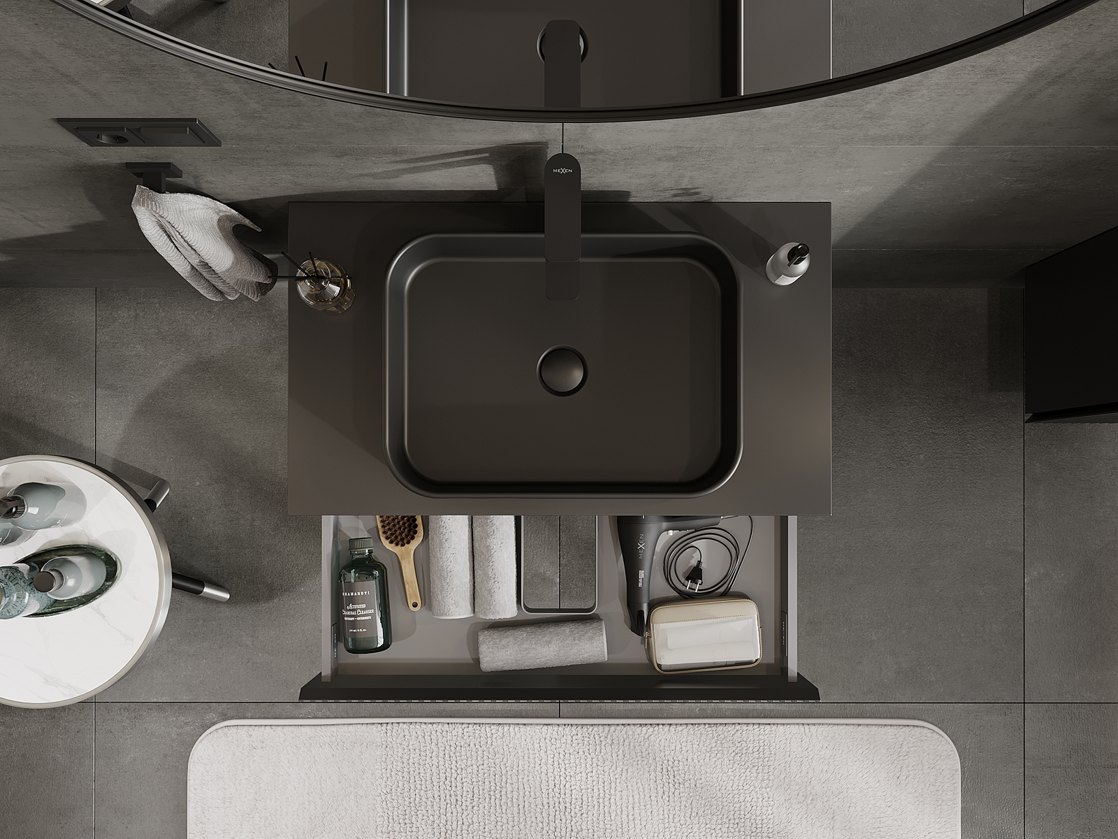 Mexen Rivel vonios spintelė po praustuvu 80 cm, 1 stalčius, grioveliais, matinė juoda - 91A20-08023-1-BF71
