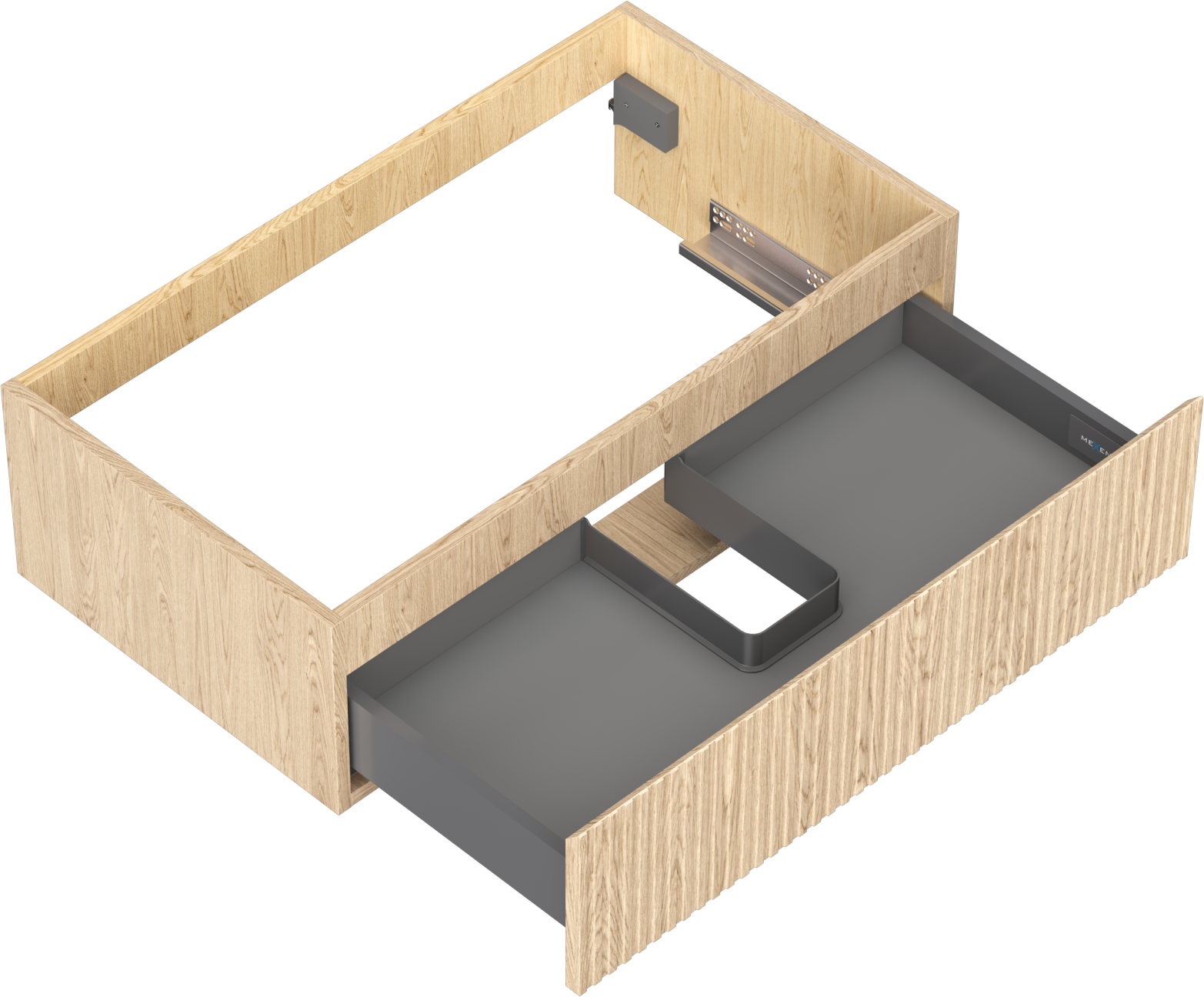 Iškirpimas stalčiuje yra suprojektuotas taip, kad tilptų sifonas, kuris yra būtinas kriauklės įrenginiuose. Dėl to baldas gali būti pilnai funkcionaliai sumontuotas, nereikalaujant atsisakyti vietos stalčiuje dėl įrenginio.