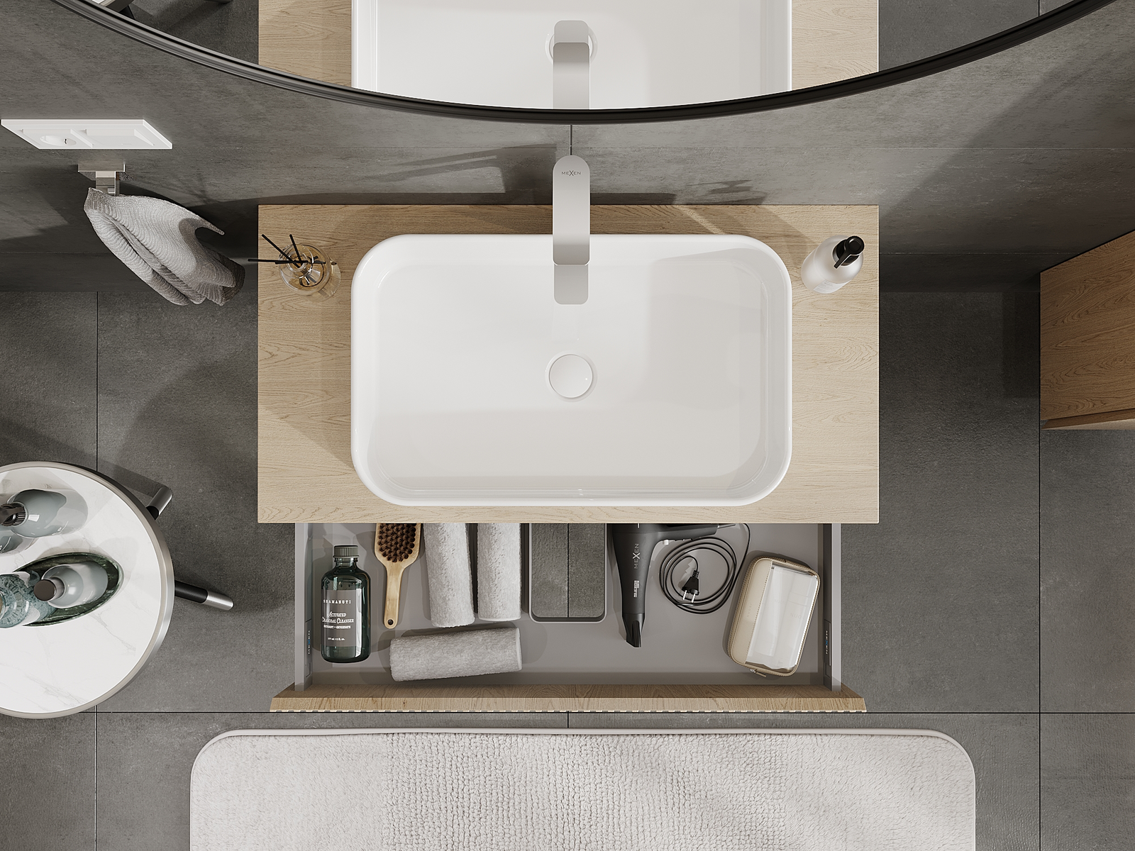 Mexen Rivel vonios veidrodis po kriaukle 90 cm, 1 stalčius, gofruotas, ąžuolas - 91A20-09023-1-BF81