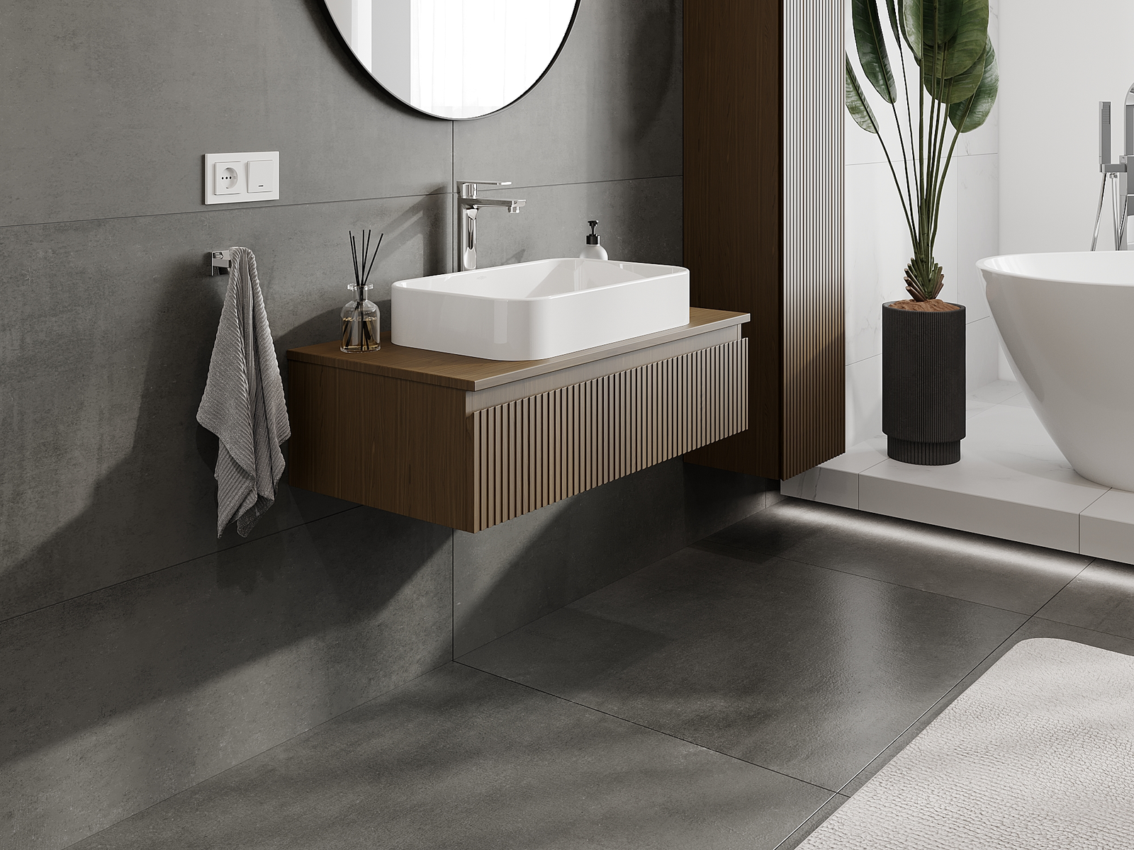 Mūsų moduliniai vonios baldai gali būti derinami tarpusavyje įvairiomis spalvų konfigūracijomis, leidžiant visiškai pritaikyti pagal asmeninius poreikius. Galima pasirinkti tiek atskirų elementų išvaizdą, tiek funkcijas, kas leidžia baldus pritaikyti pagal savo stiliaus ir naudojimo preferencijas.