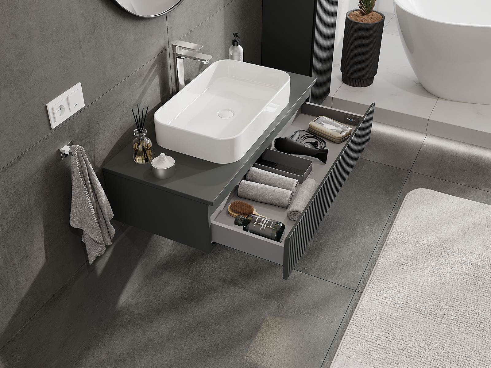 Mexen Rivel vonios kambario spintelė po praustuvu 100 cm, 1 stalčius, rifliuota, grafito matinė - 91A20-10023-1-BF66