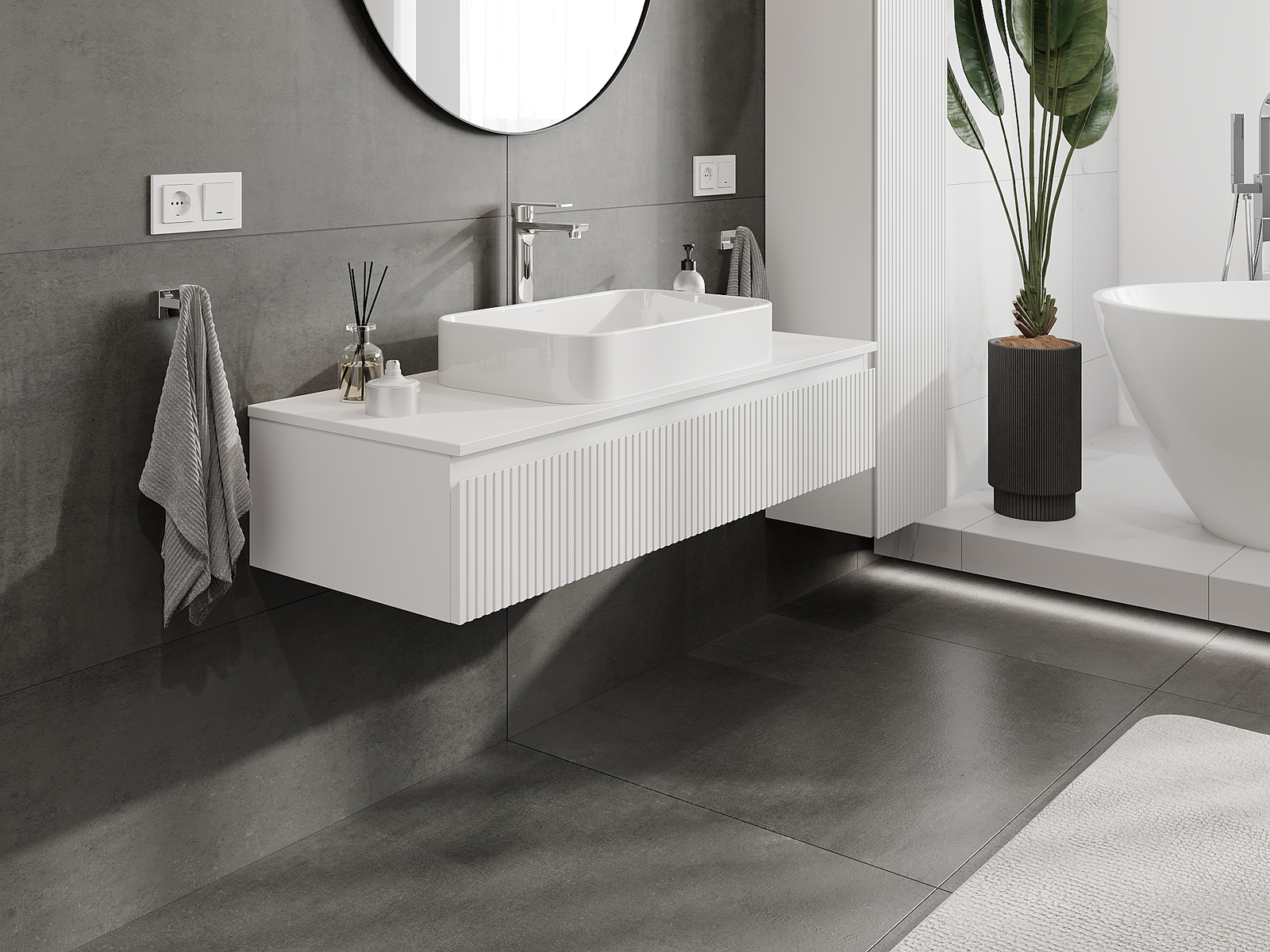 Mexen Rivel vonios kambario spintelė po kriaukle 120 cm, 1 stalčius, rifliuota, balta matinė - 91A20-12023-1-BF01